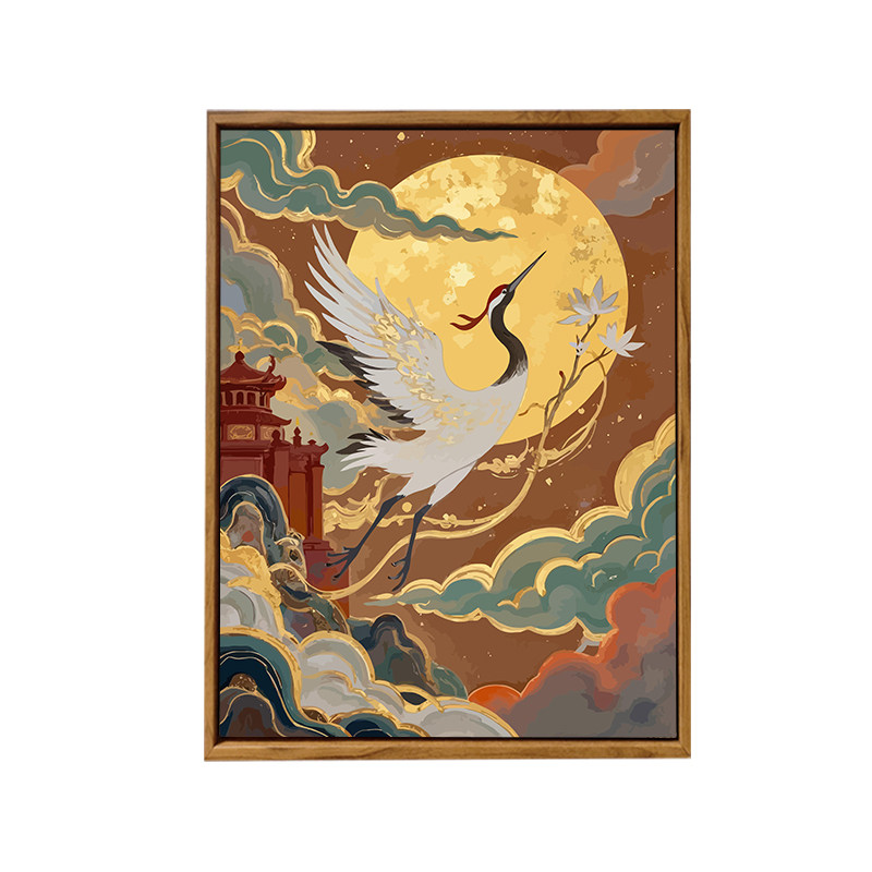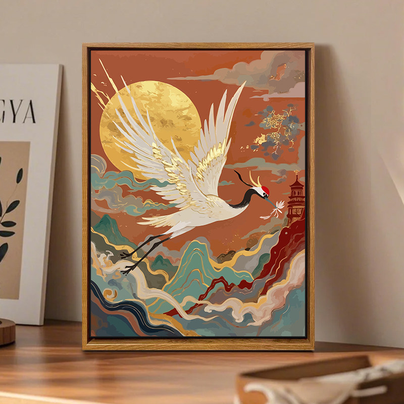 📚 敦煌中古风仙鹤DIY数字油画手工绘填充涂色高级感风景客厅装饰画