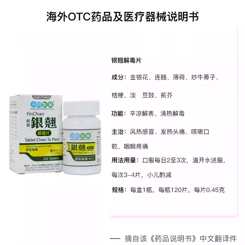 📚 【自营】永明制药银翘解毒片120片风热感冒咳嗽喉咙痛发热头痛