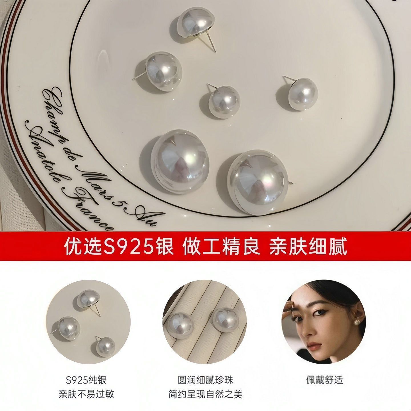 📚 菲菲珠宝耀眼的你殷桃康子由同款半圆珍珠耳钉女纯银轻奢耳环耳饰