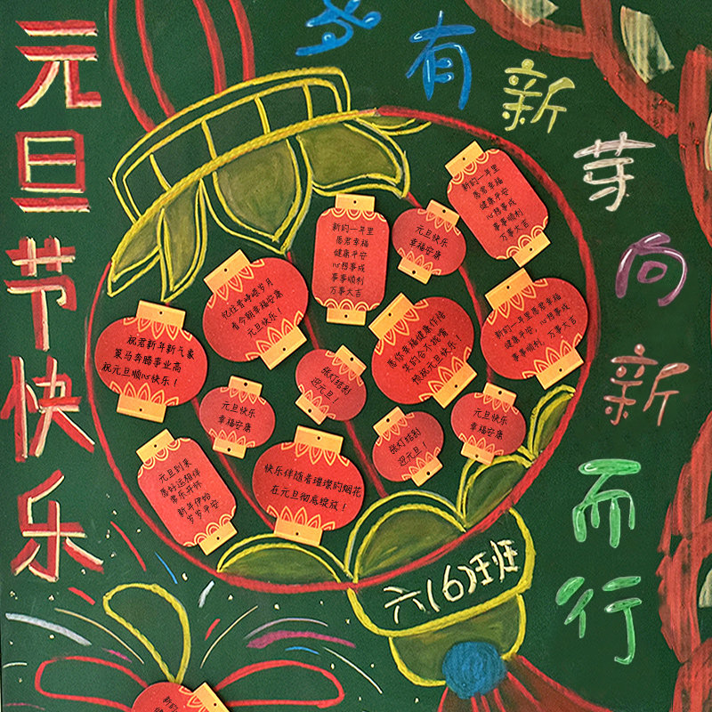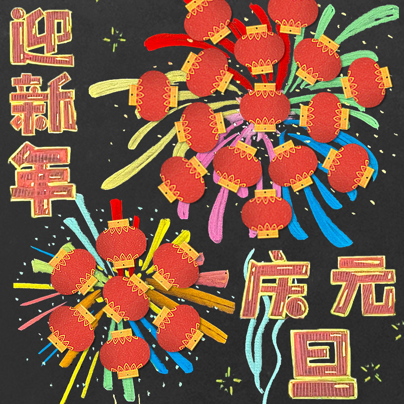 📚 新年春节红灯笼喜庆吊卡商场店铺自制手写留言黑板报创意祝福语贺卡班级教师文化宣传墙装饰卡片纸手写环创墙