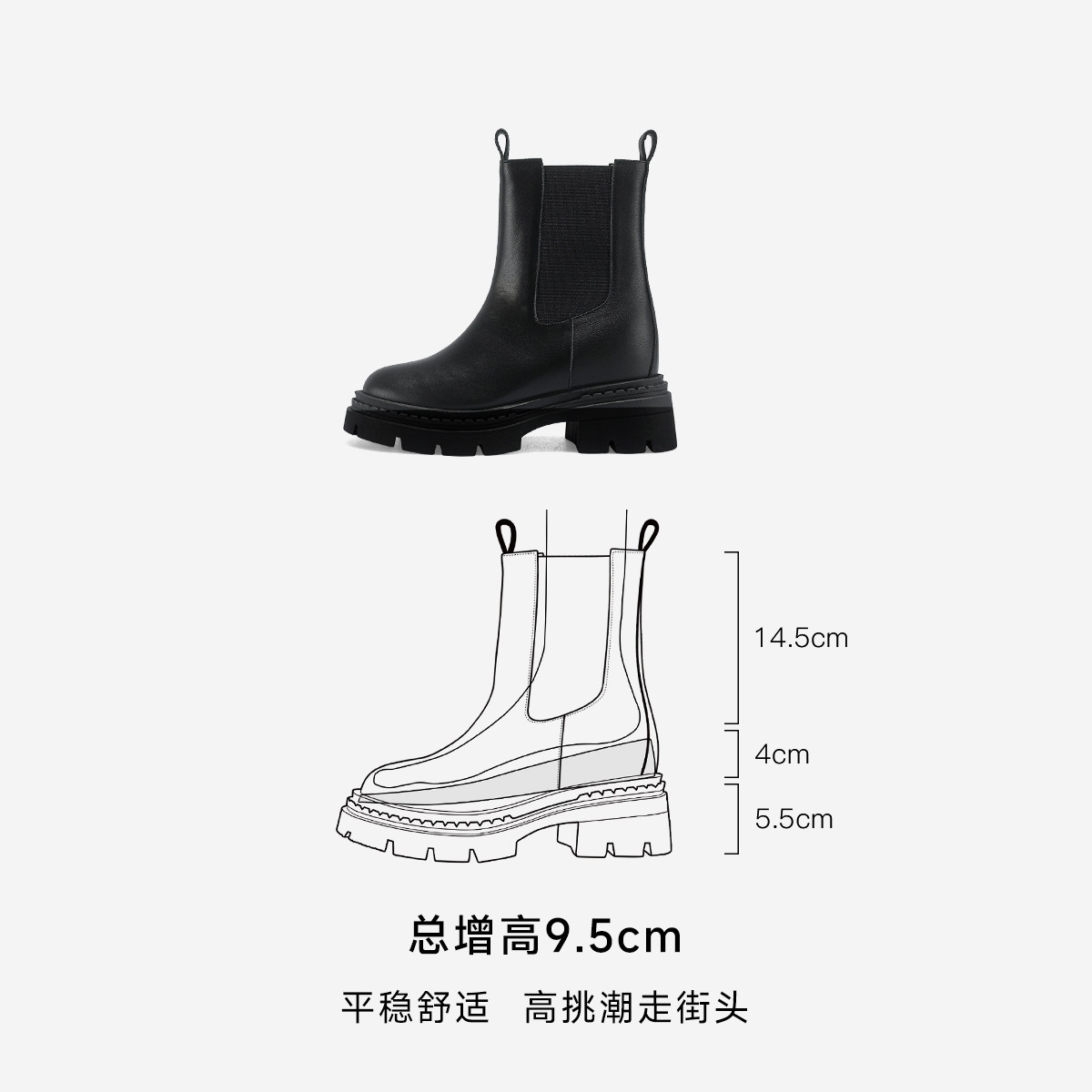 📚 【明星同款】iiJin艾今9.5cm厚底内增高英伦切尔西短靴子女774VNA