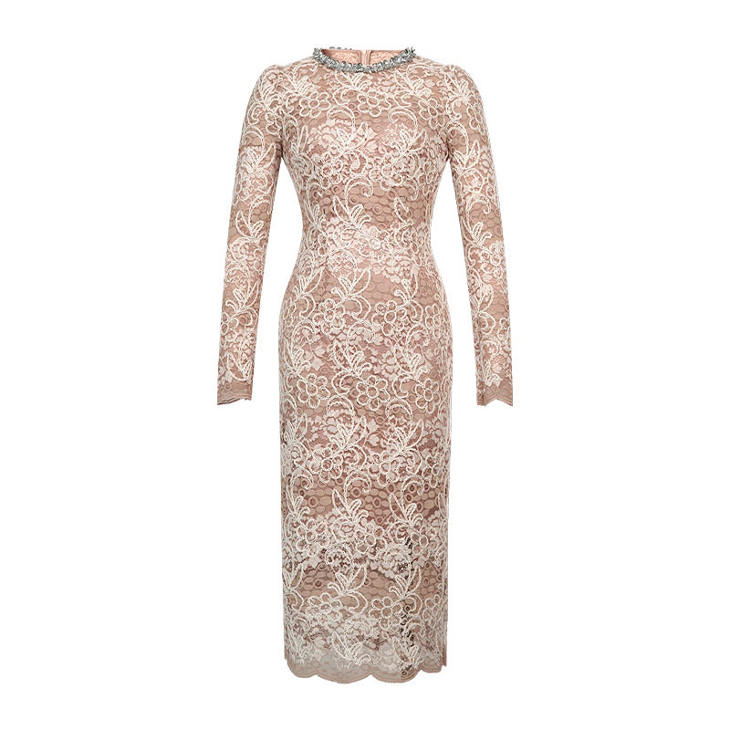 🍂 秋冬新款女名媛气质亮片圆领修身包臀蕾丝长袖连衣裙,简直是优雅与时尚的完美结合!👗