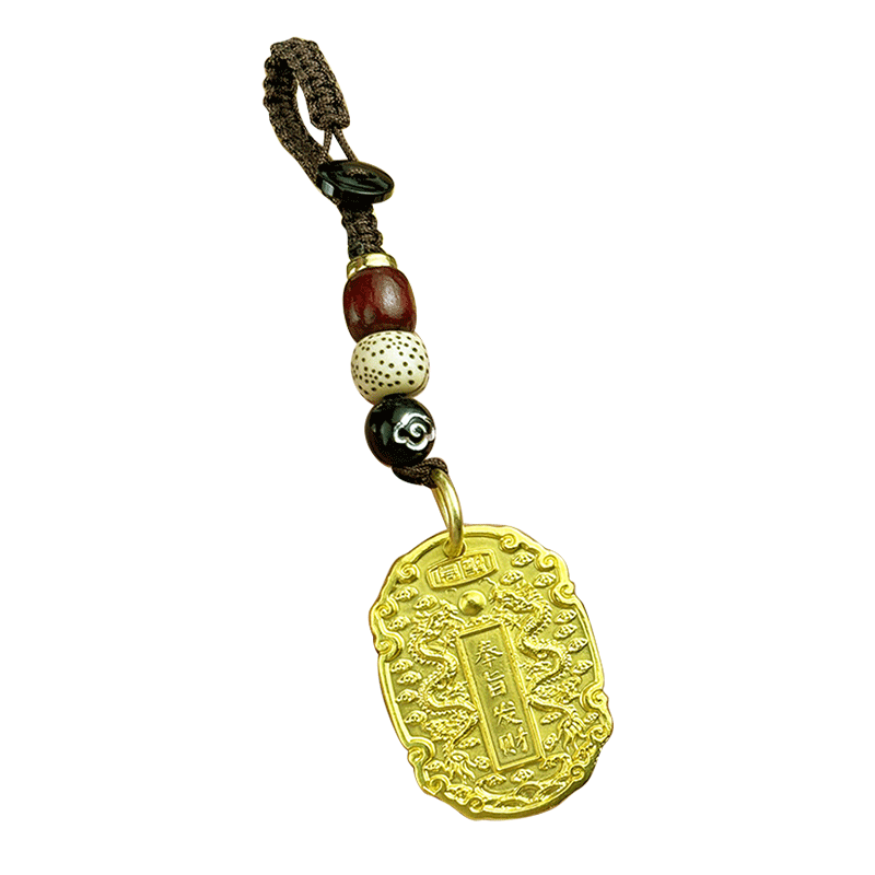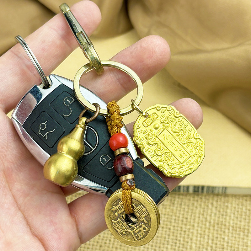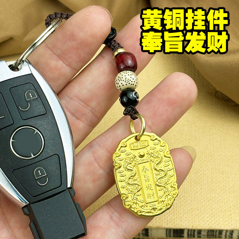 📚 龙年黄铜奉旨发财实心钥匙扣男女包包平安挂件好运健康挂饰小礼物