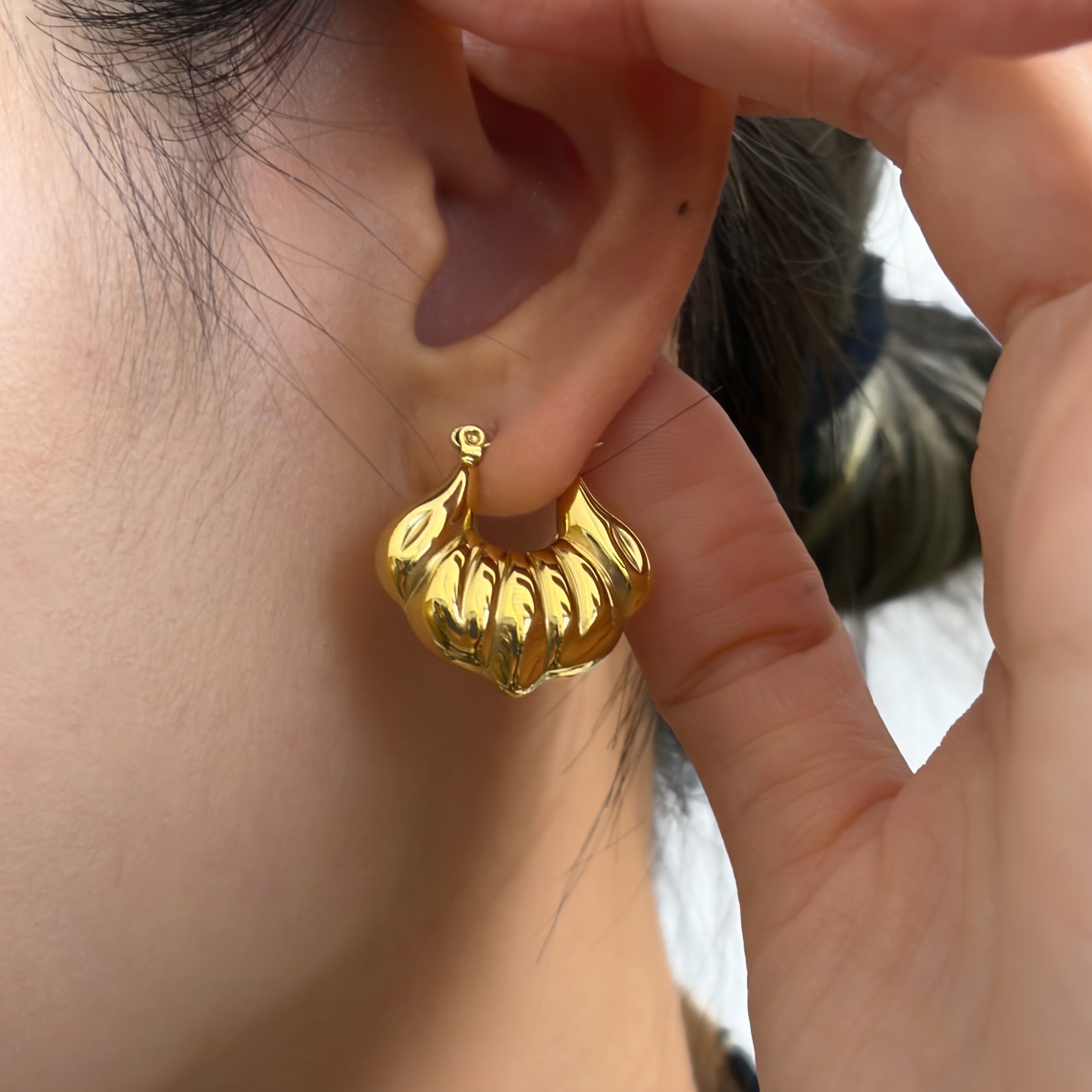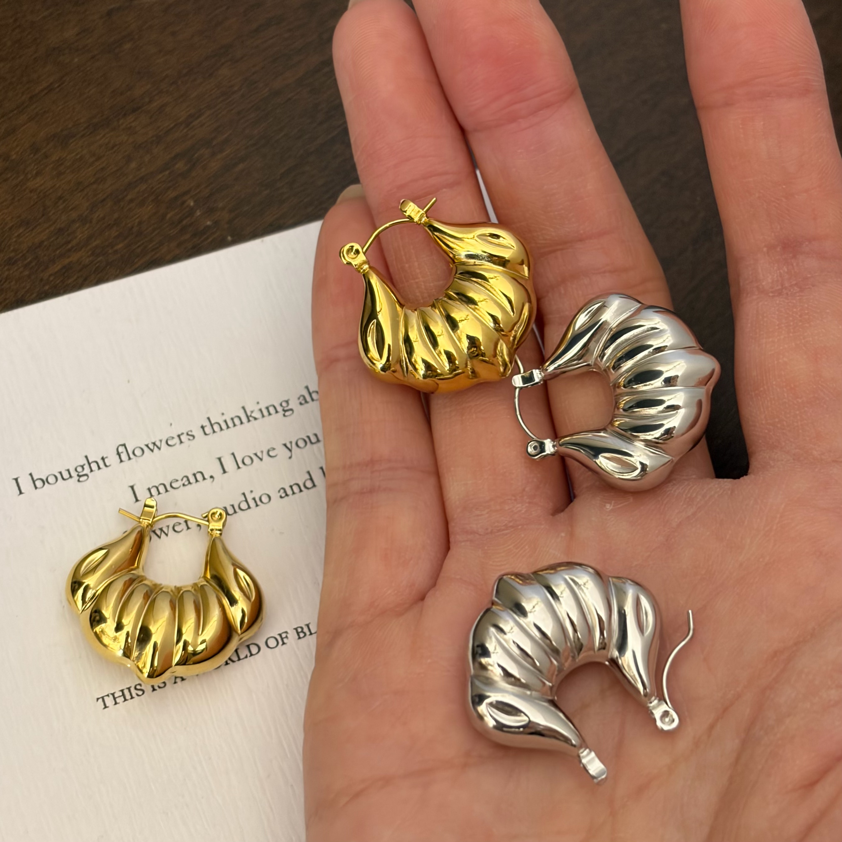 📚 734钛钢空心扇形白金色褶皱耳环简约气质显脸小通勤耳环ins风耳饰