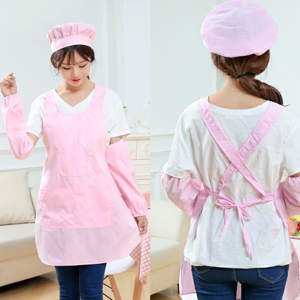 📚 买1发2件围裙纺织厂围裙女棉纺纱厂饭单织布厨师白围裙帽子套袖印