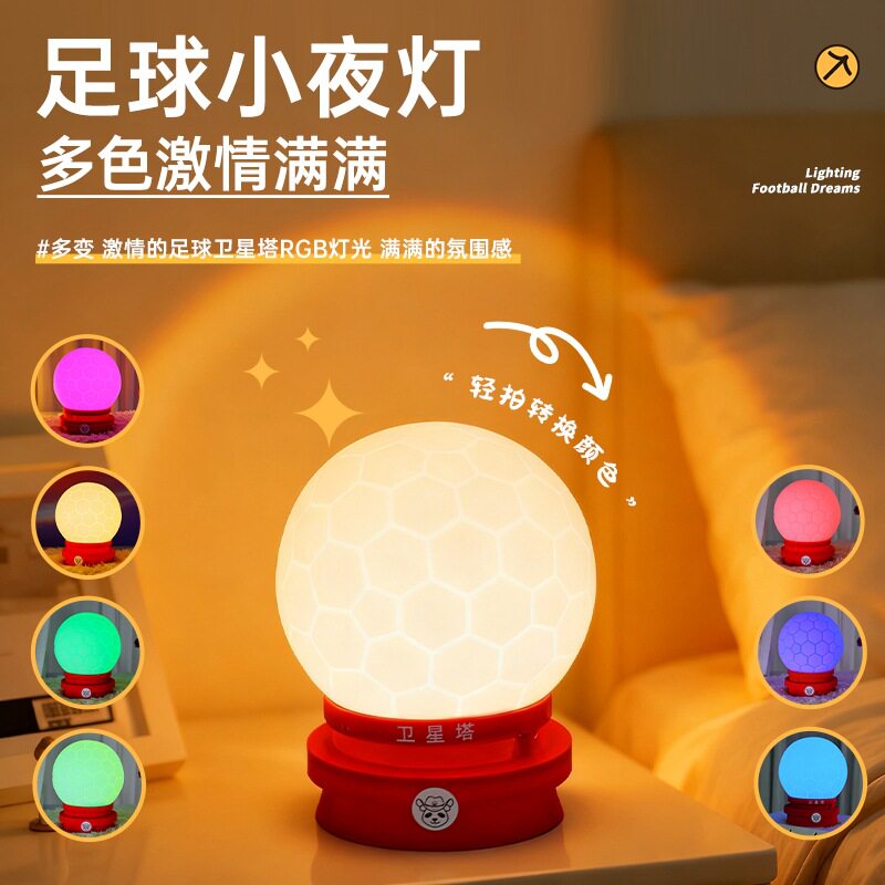 📚 2026新款足球小夜灯硅胶拍拍灯床头氛围卧室睡眠灯酒吧世界杯氛围