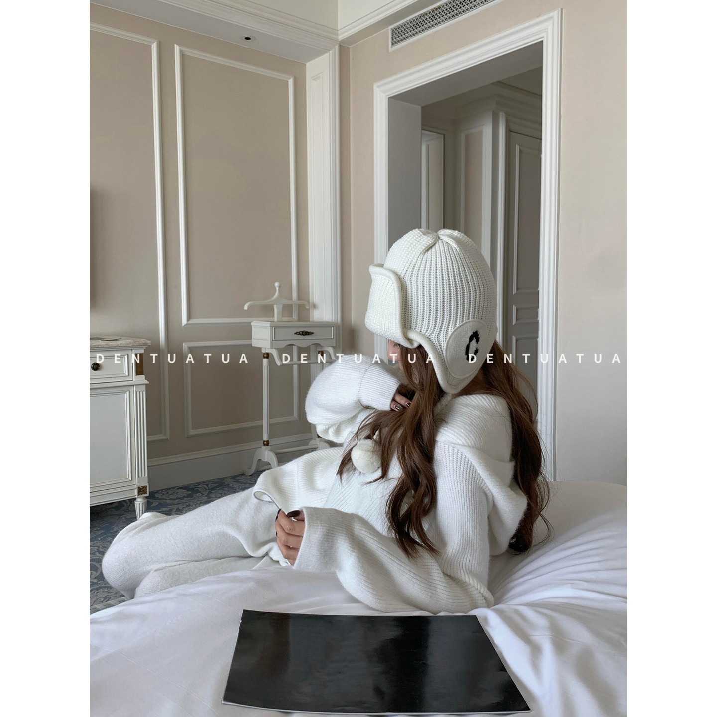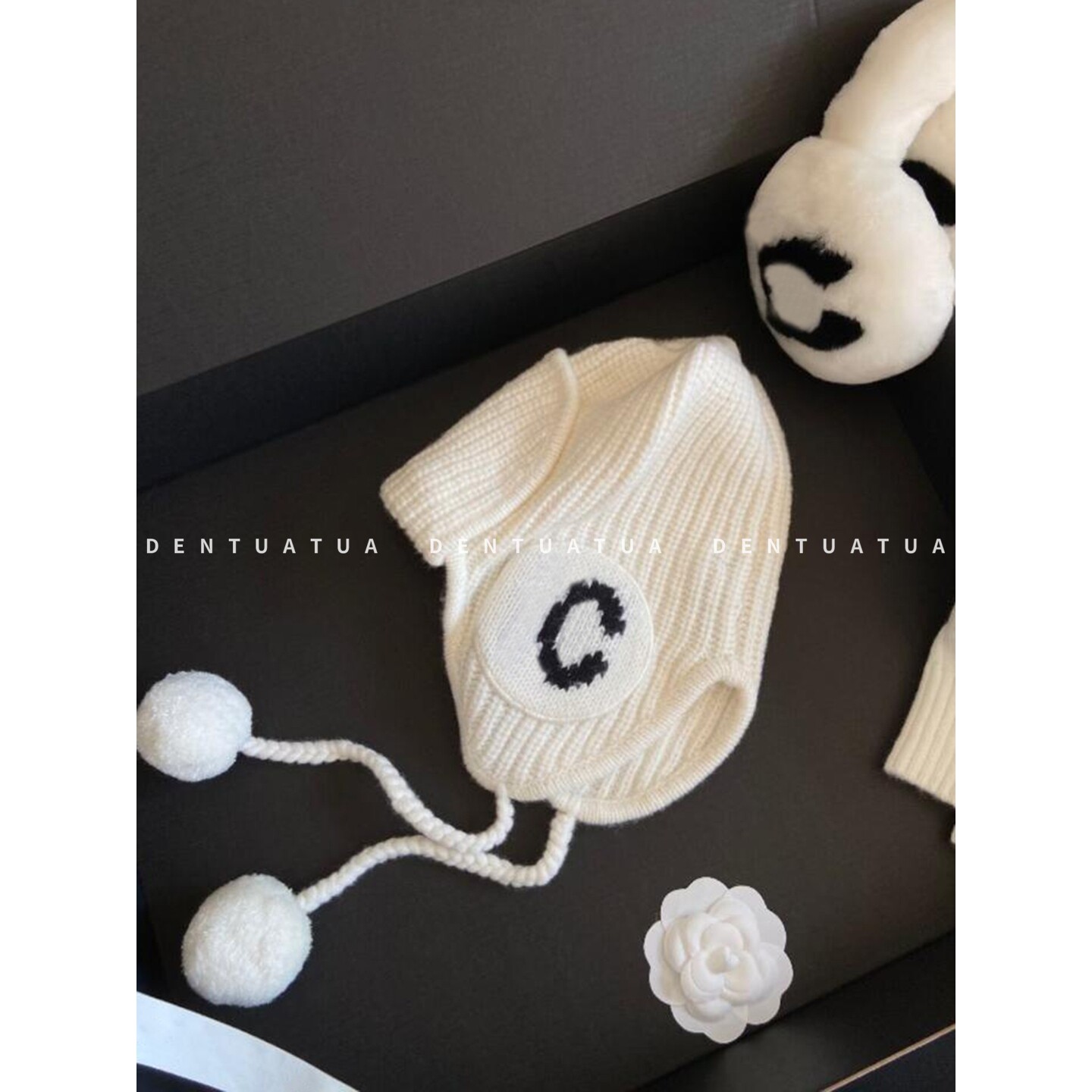 📚 DENTUATUA 软萌 buff 帽! 25FW 字母刺绣护耳毛球羊毛针织冷帽女