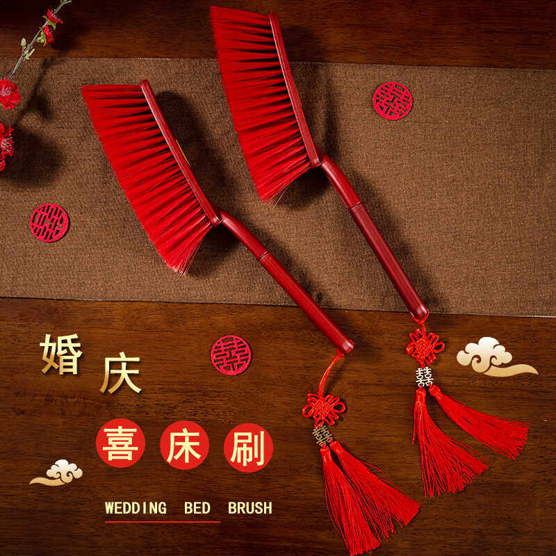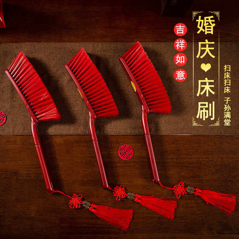 📚 结婚床刷扫床红色毛结婚扫床刷子家用高档木质除尘刷婚礼婚庆用品