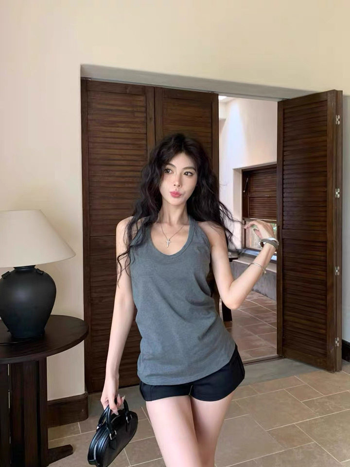 📚 港式辣妹宽松白色吊带背心带胸垫夏季百搭无袖上衣女慵懒内搭外穿