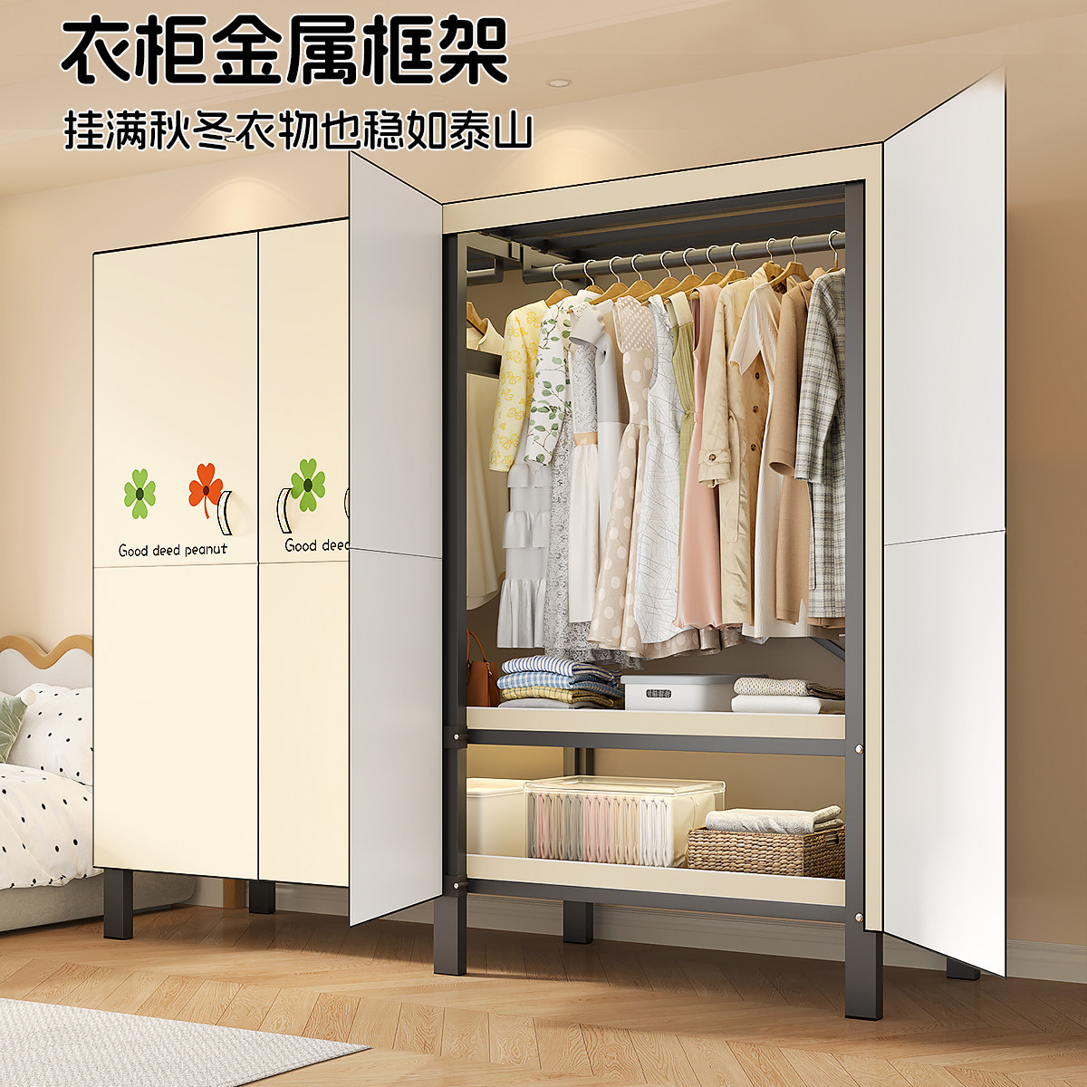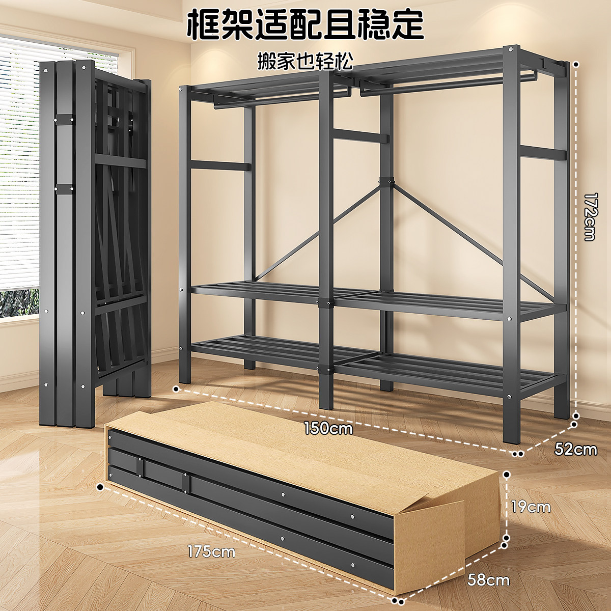 📚 衣柜金属框架可折叠免安装加粗加厚结实耐用出租房小户型收纳衣橱