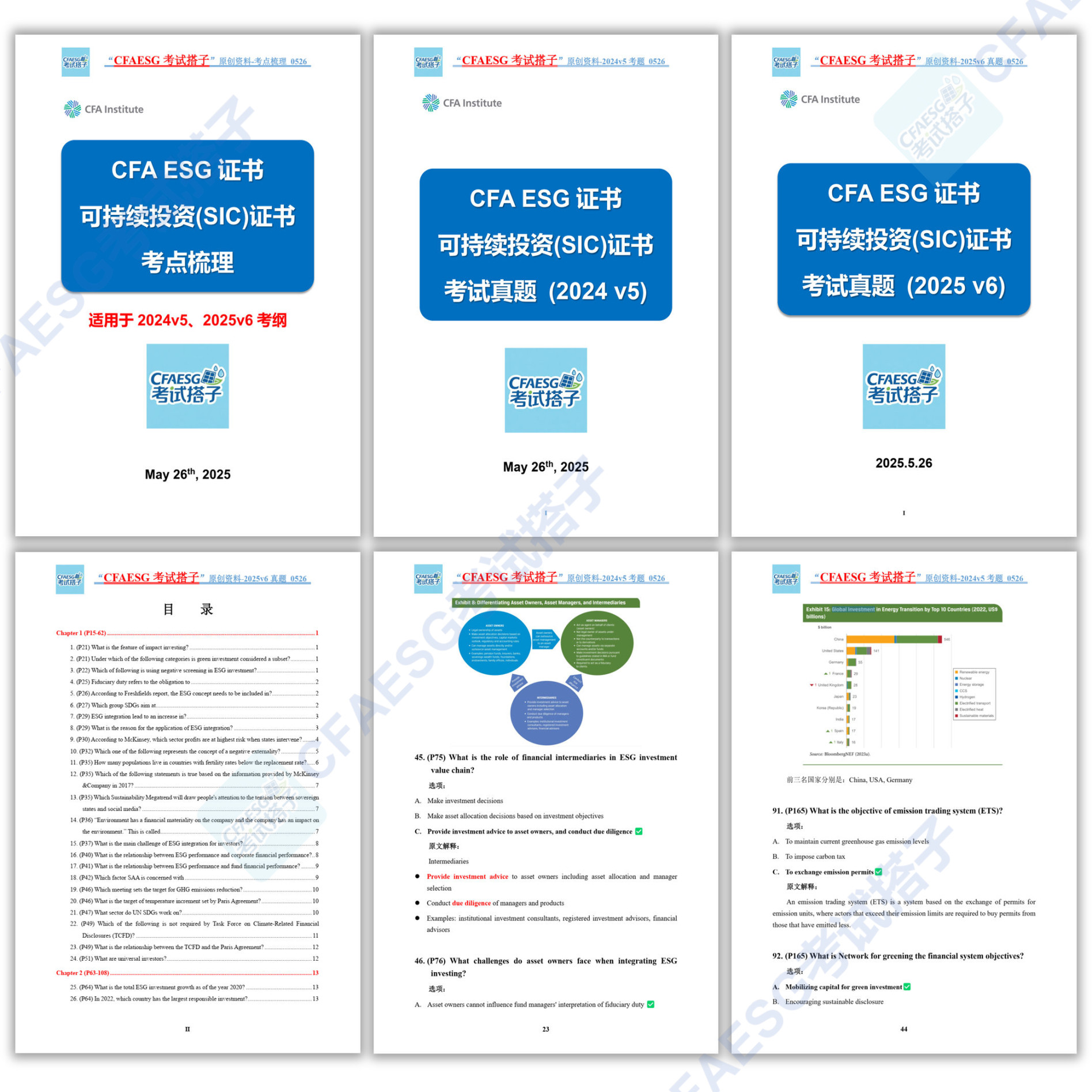 📚 CFA ESG可持续投资Sustainable Investing考试机经题库辅导考点