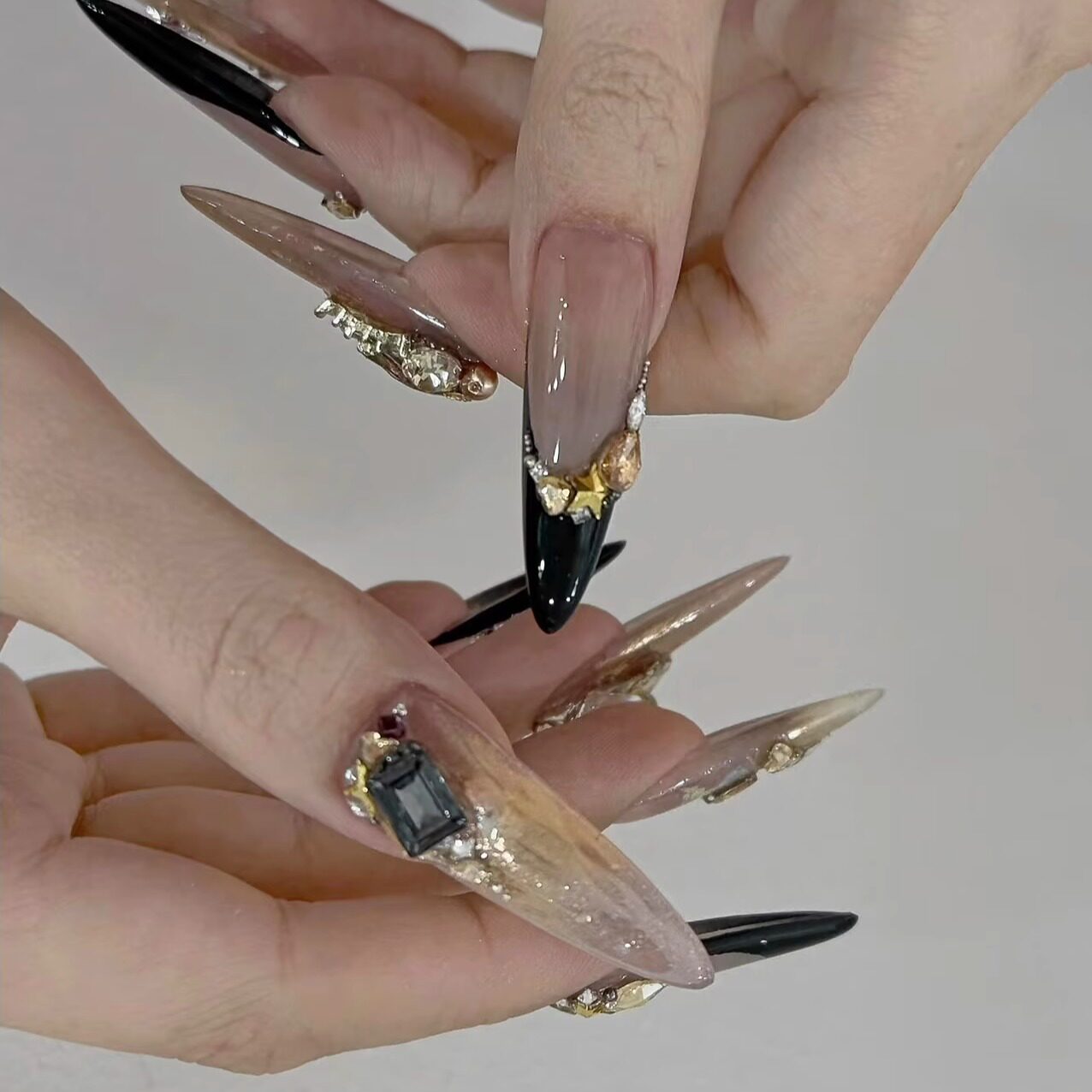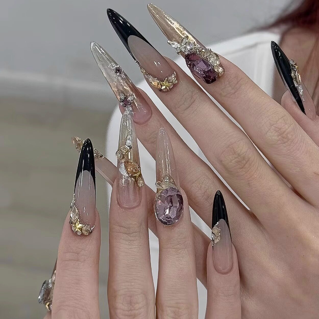 📚 施家华子钻美甲钻材料包紫金配色超闪显贵美甲钻款式材料包