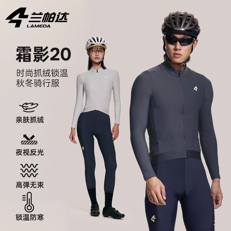 📚 兰帕达新款抓绒骑行服秋冬上衣保暖男女自行车霜影20双箭头套装