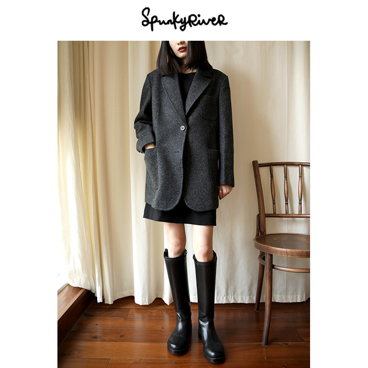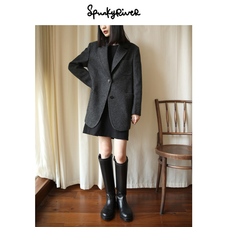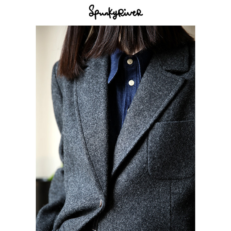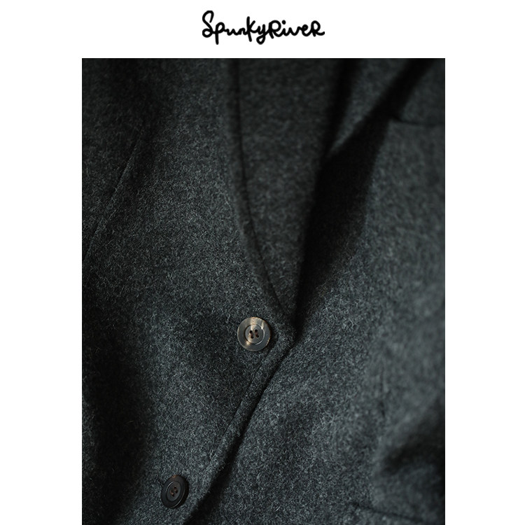 📚 丹麦深灰色羊毛女士单西复古西服麦尔登呢厚实羊毛保暖秋冬西服