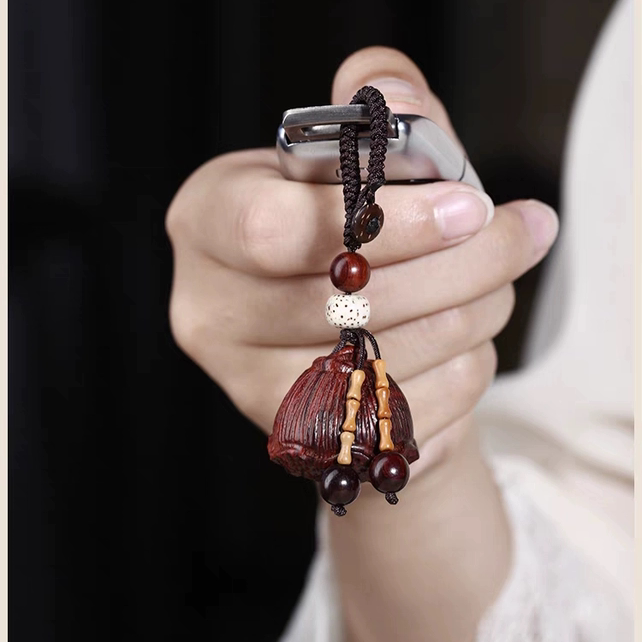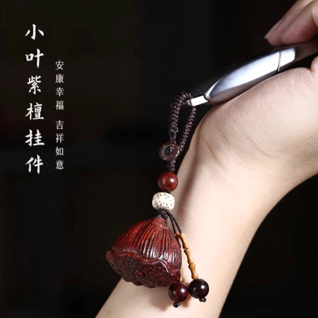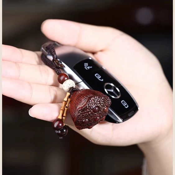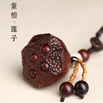 📚 印度小叶紫檀车钥匙扣挂件挂饰天然实木大号莲蓬籽可转动好运连连