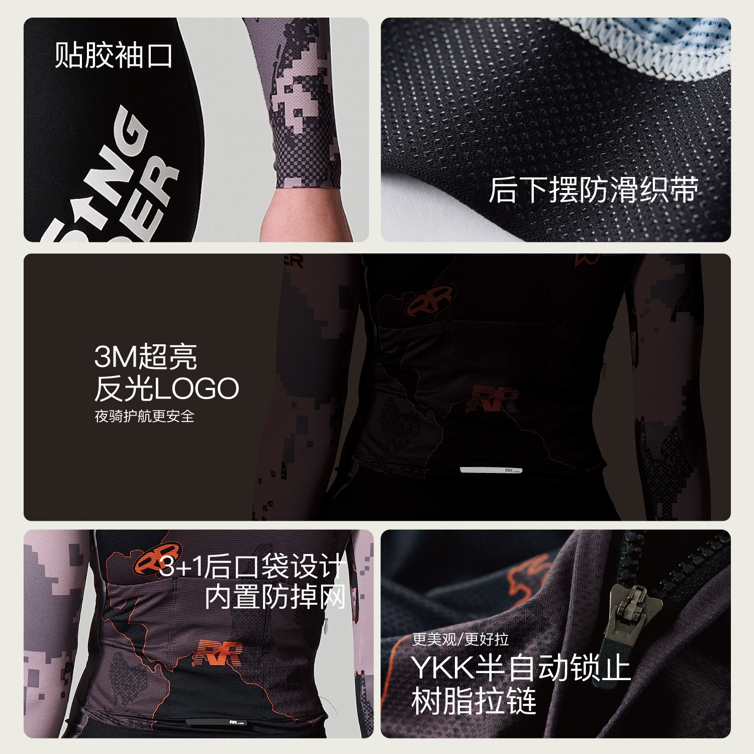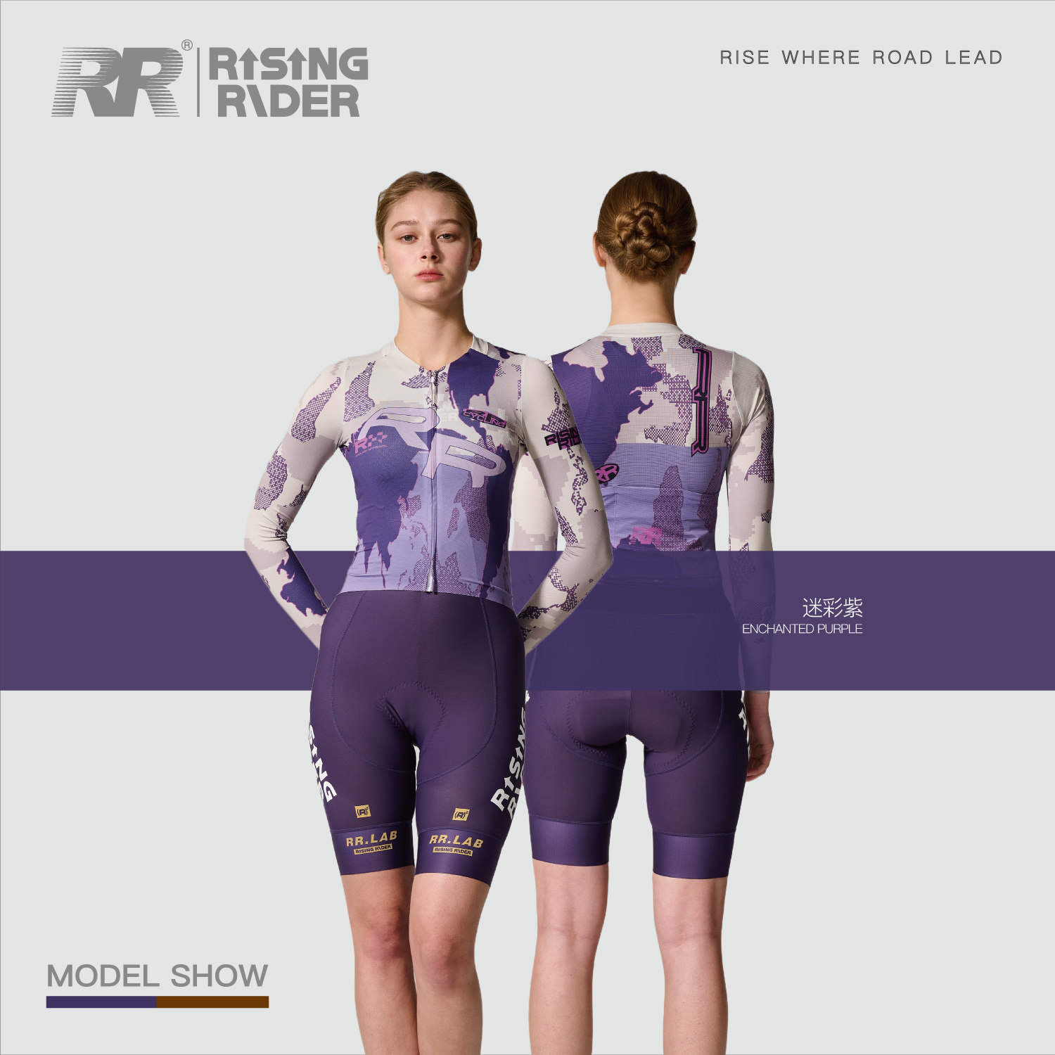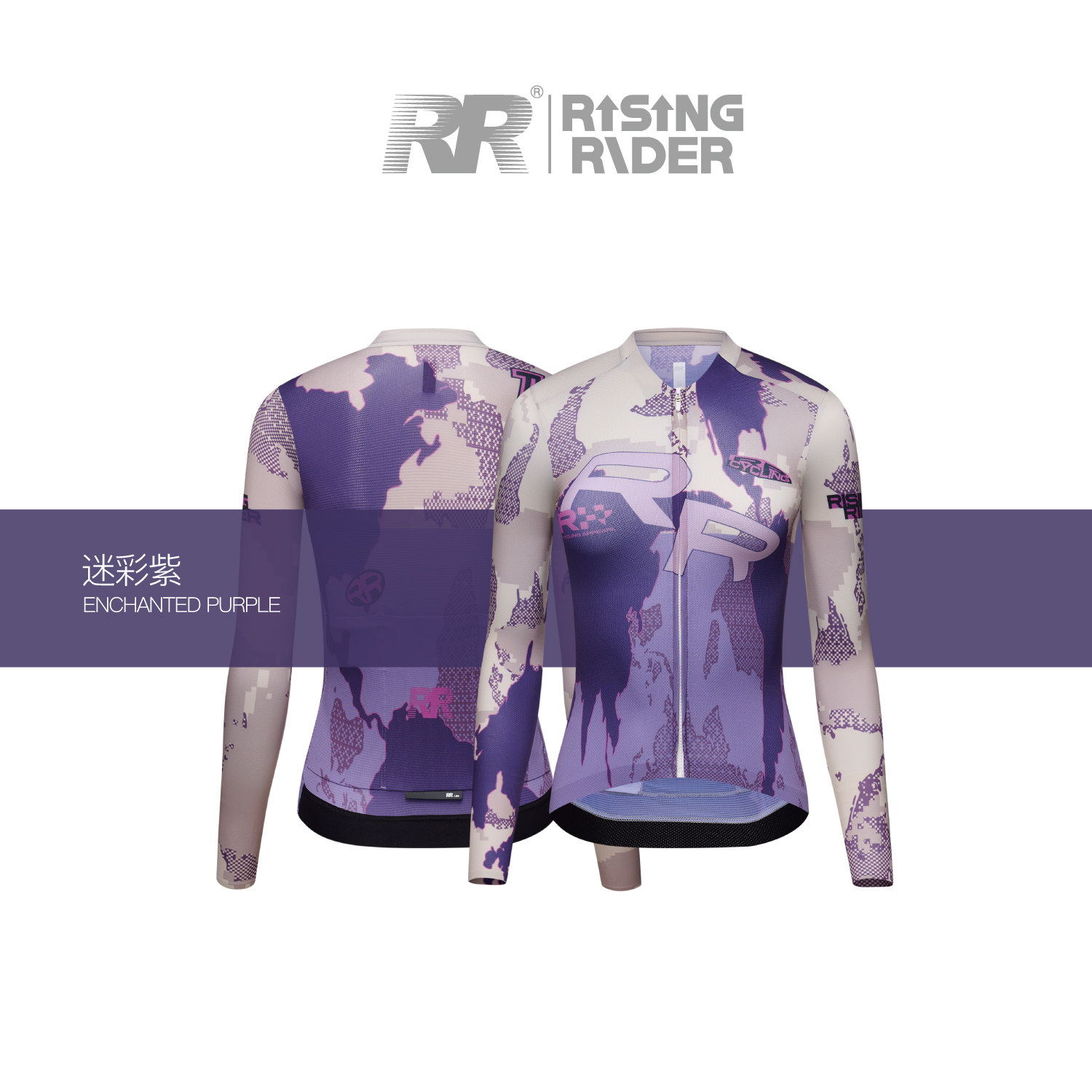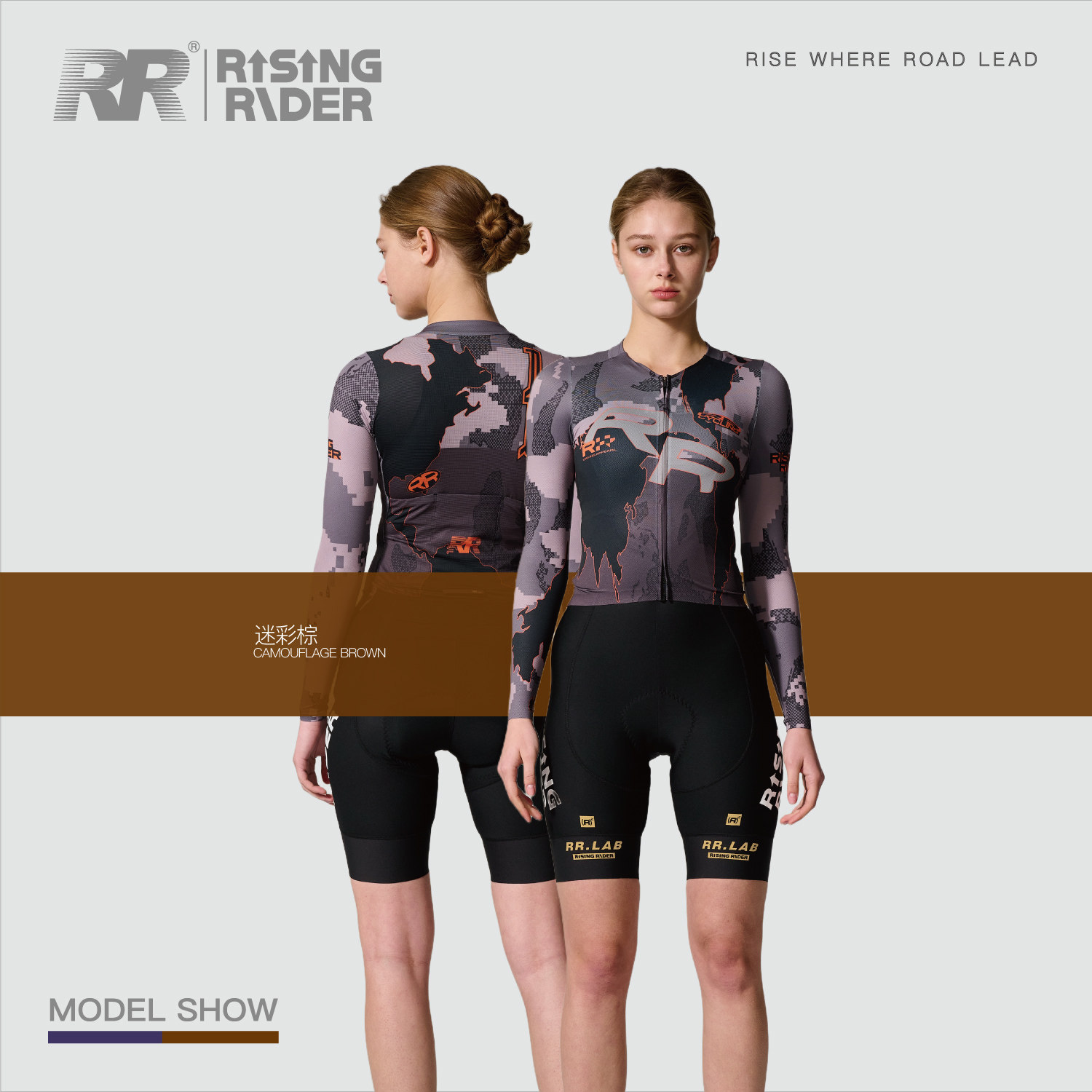 📚 RR春夏款迷彩印花女士长袖上衣速干透气防晒公路自行车骑行服