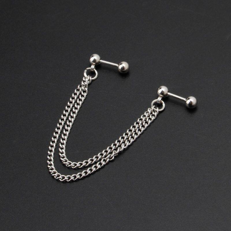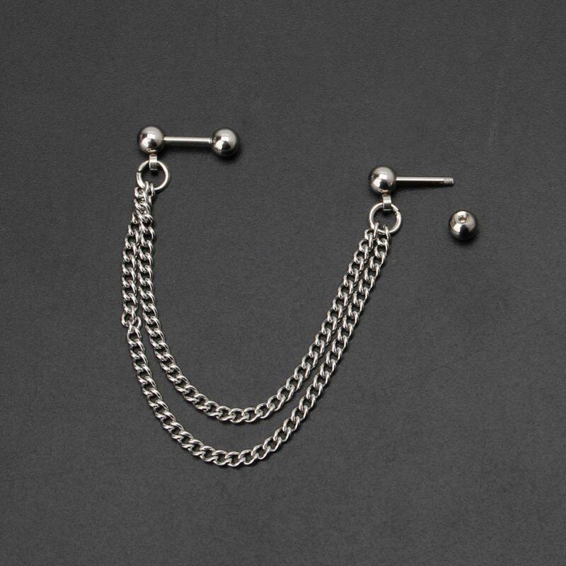 📚 Hot 1Pc Punk all Stud Cartilage Ear Wrap Doule Chain Pierc