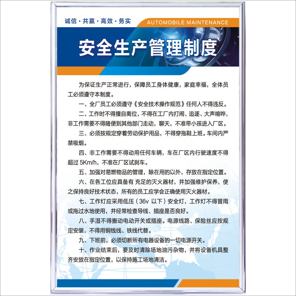 📚 安全生产管理制度汽修厂4S店三类安全操作规程规章文化墙KT板挂图