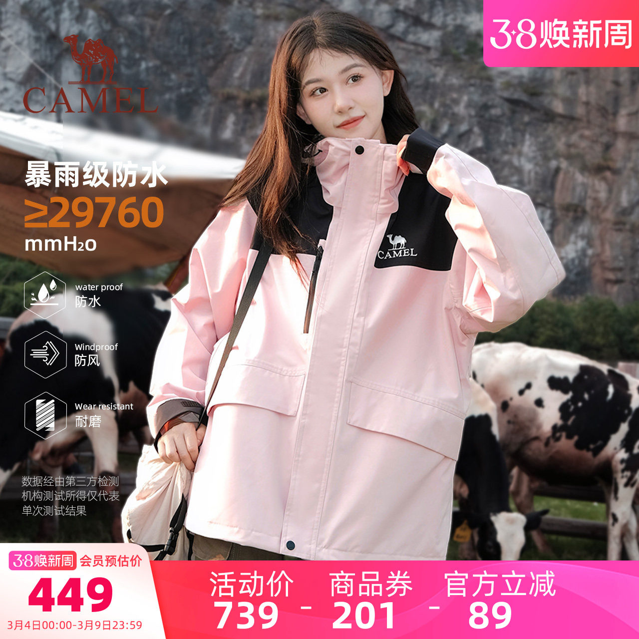 📚 骆驼王者凯甲系列女装冲锋衣外套三合一秋冬防水抓绒内胆休闲外套