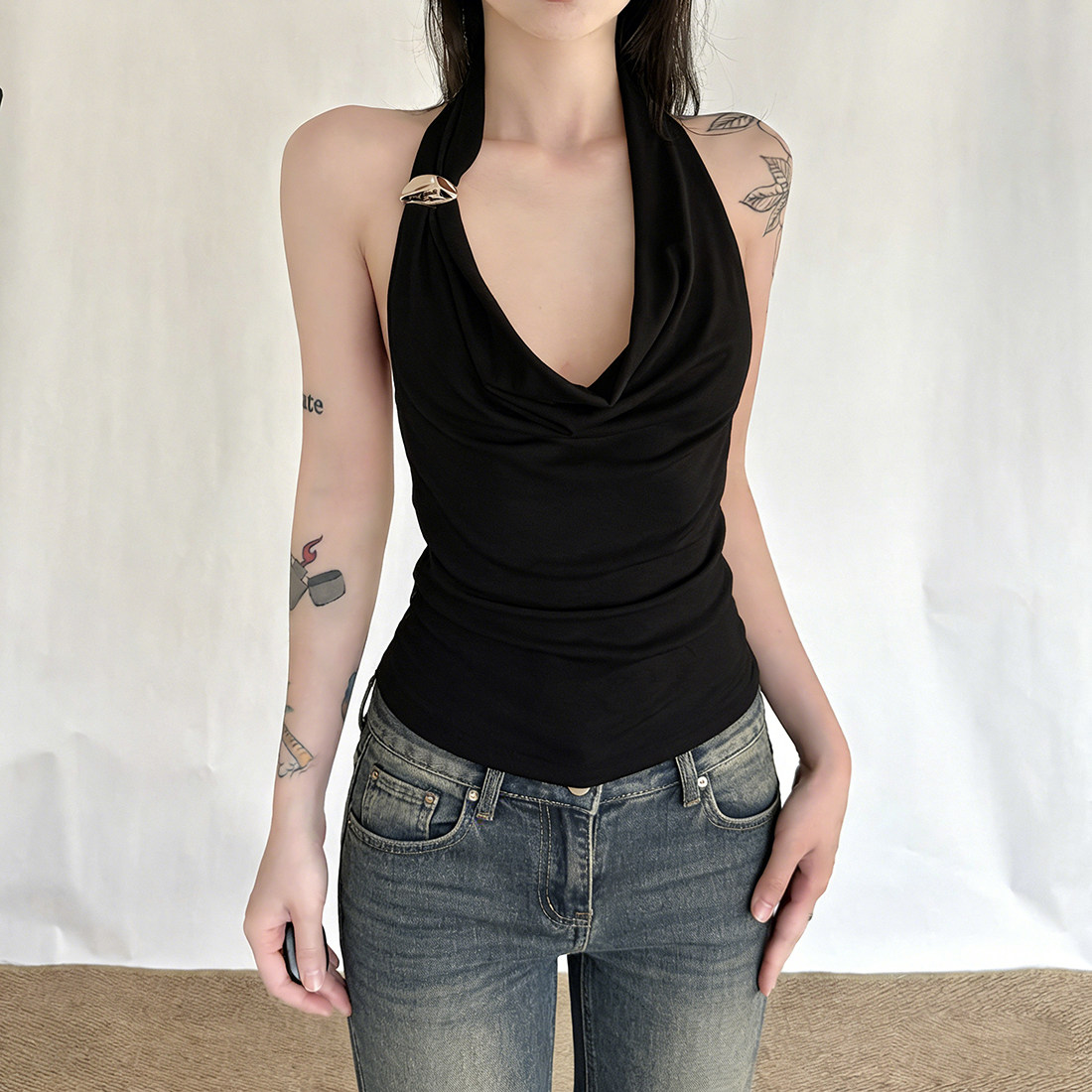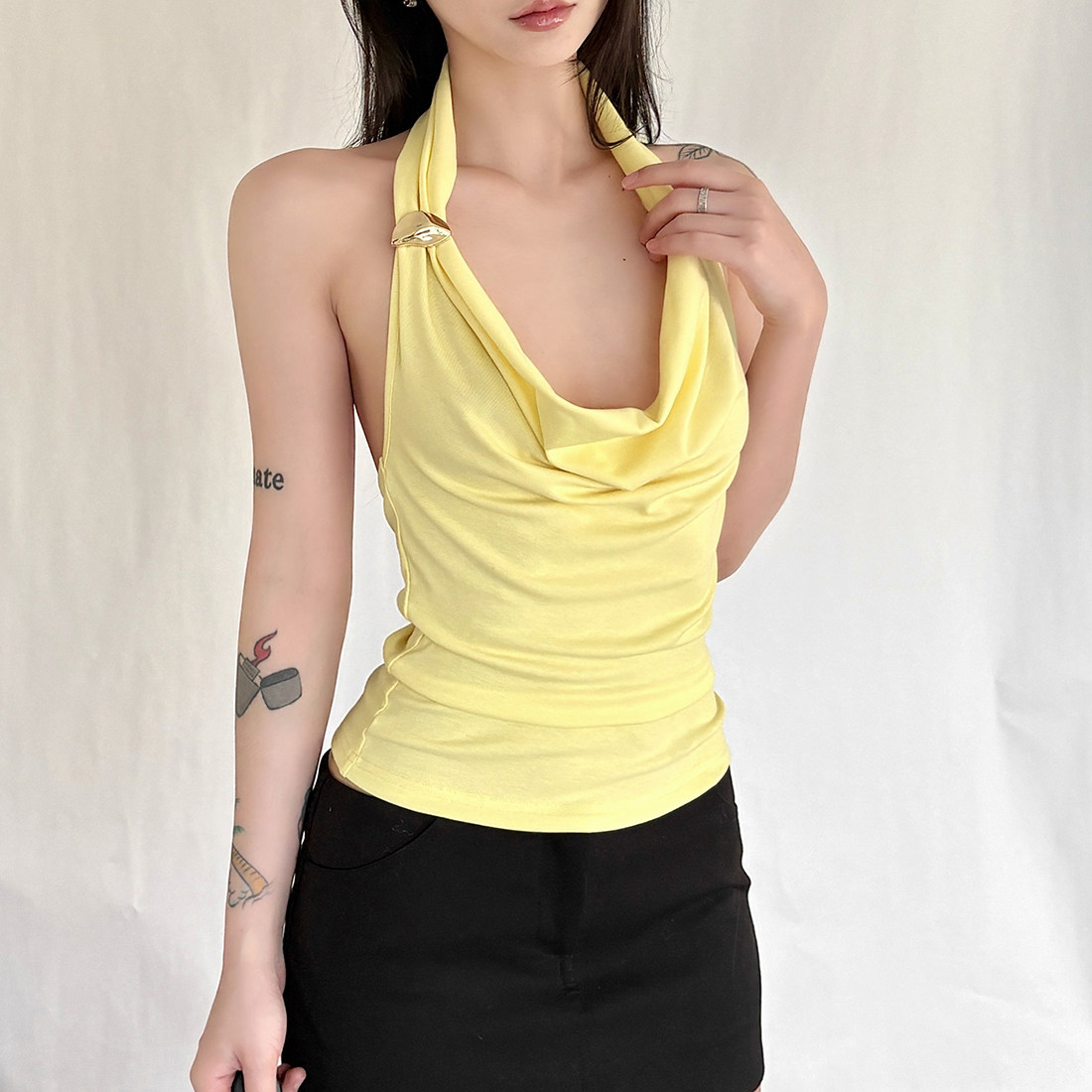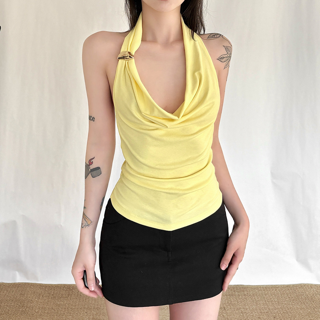 📚 SylCue 妖精的夏天荡领修身无袖背心露背百搭纯色显瘦打底短上衣