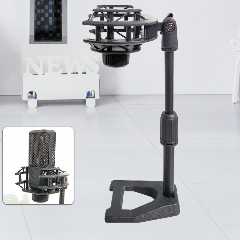 📚 大振膜方麦克风支架桌面台式可调节电容麦话筒夹金属莱维特防震架