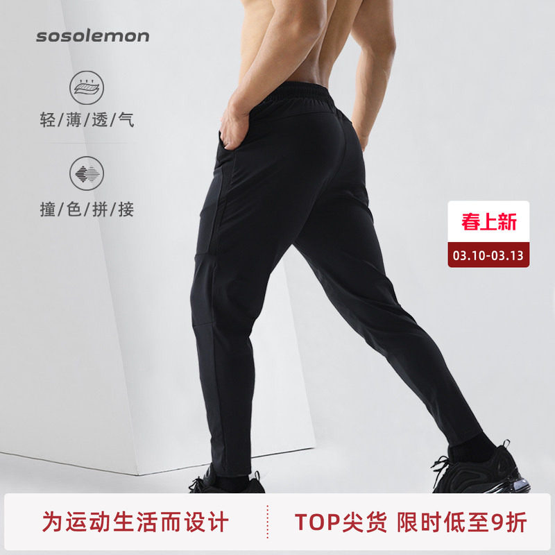 📚 SOSOLEMON运动健身休闲长裤男速干透气薄国潮提臀弹力修身小脚裤