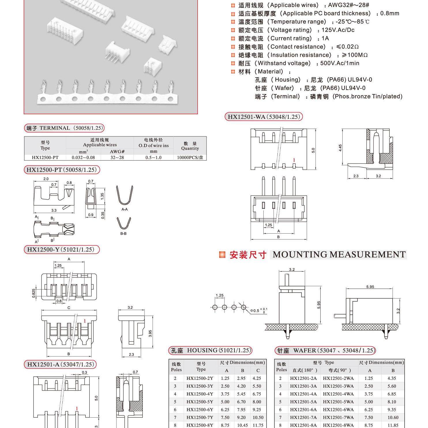 📚 HXH红星接插件HX12500-2Y-3Y-4Y-5Y-6Y7Y-15Y规格齐全 间距1.25MM