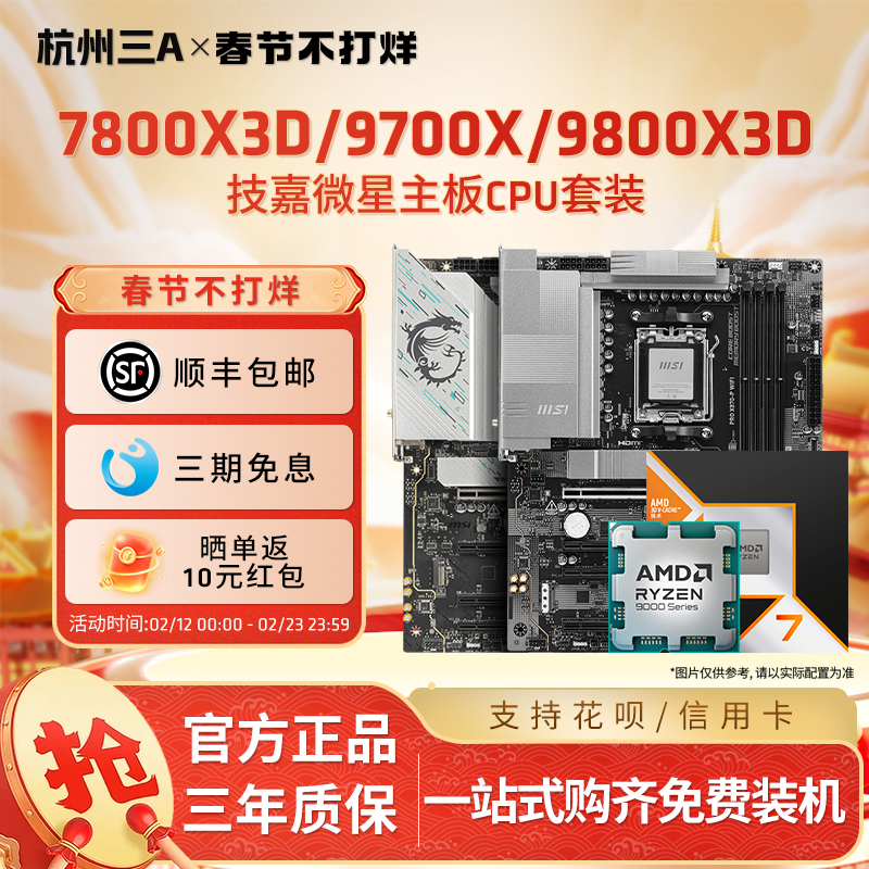 38¥ HU006 e5fCUNCUFes¥ https://m.tb.cn/h.7D6cRQE AMD锐龙R7 9800X3D 9700X 7800X3D微星X870E战斧暗黑主板CPU套装 --------------------- 【原售价】14,999元 【现售价】2,810.6元。