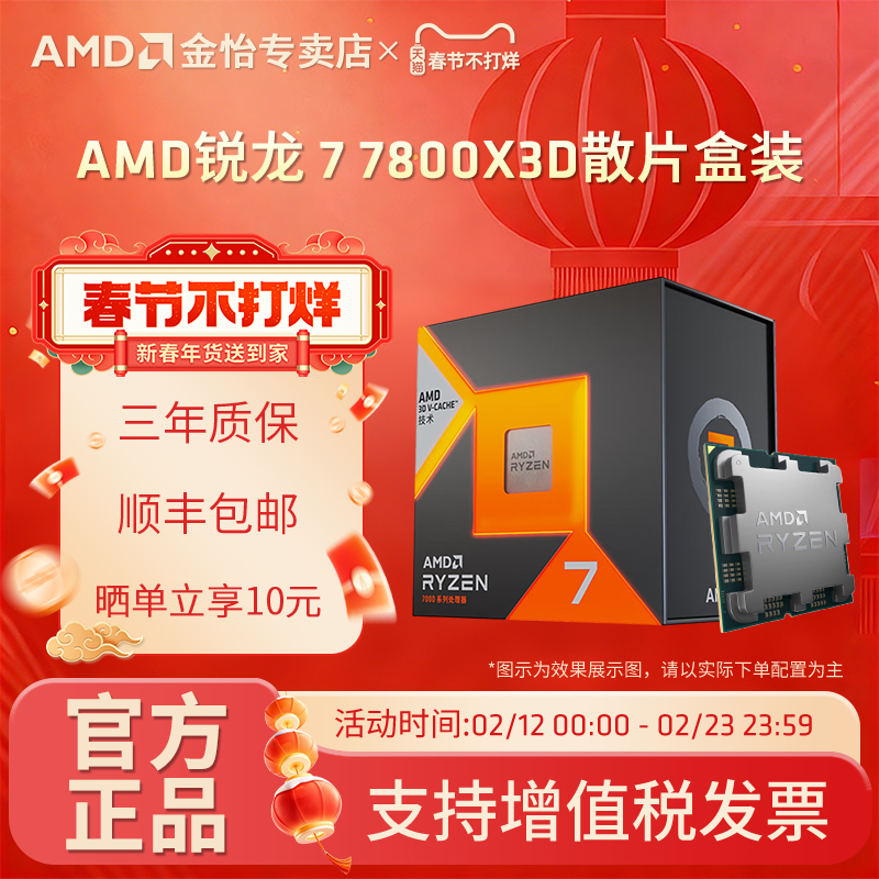 18¥ CZ001 m3QlUn6CDzy¥ https://m.tb.cn/h.7DIunvu AMD锐龙7800X3D盒装散片全新CPU台式电脑处理器 --------------------- 【原售价】9,999元 【现售价】2,704.7元。