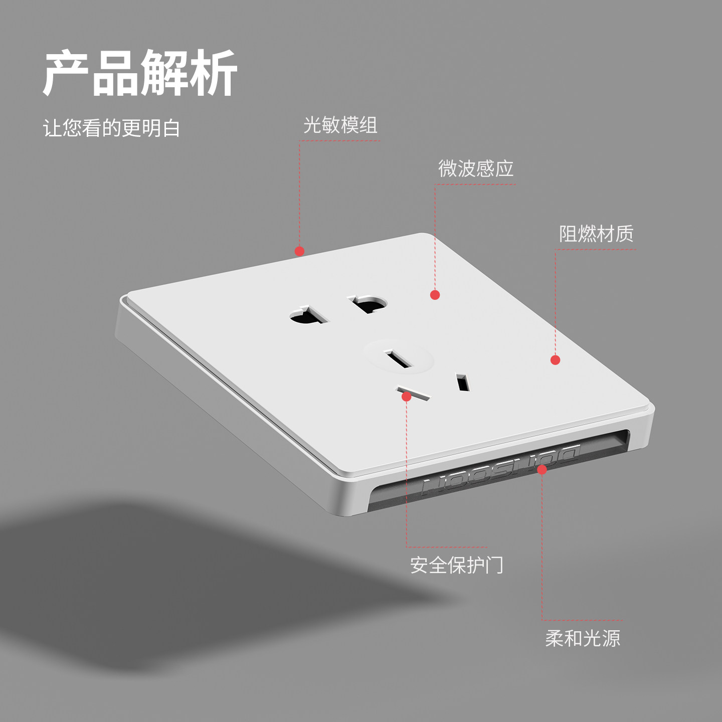 📚 智能光敏人体双感应开关小夜灯86型五孔插座走廊楼梯踏步灯地脚灯