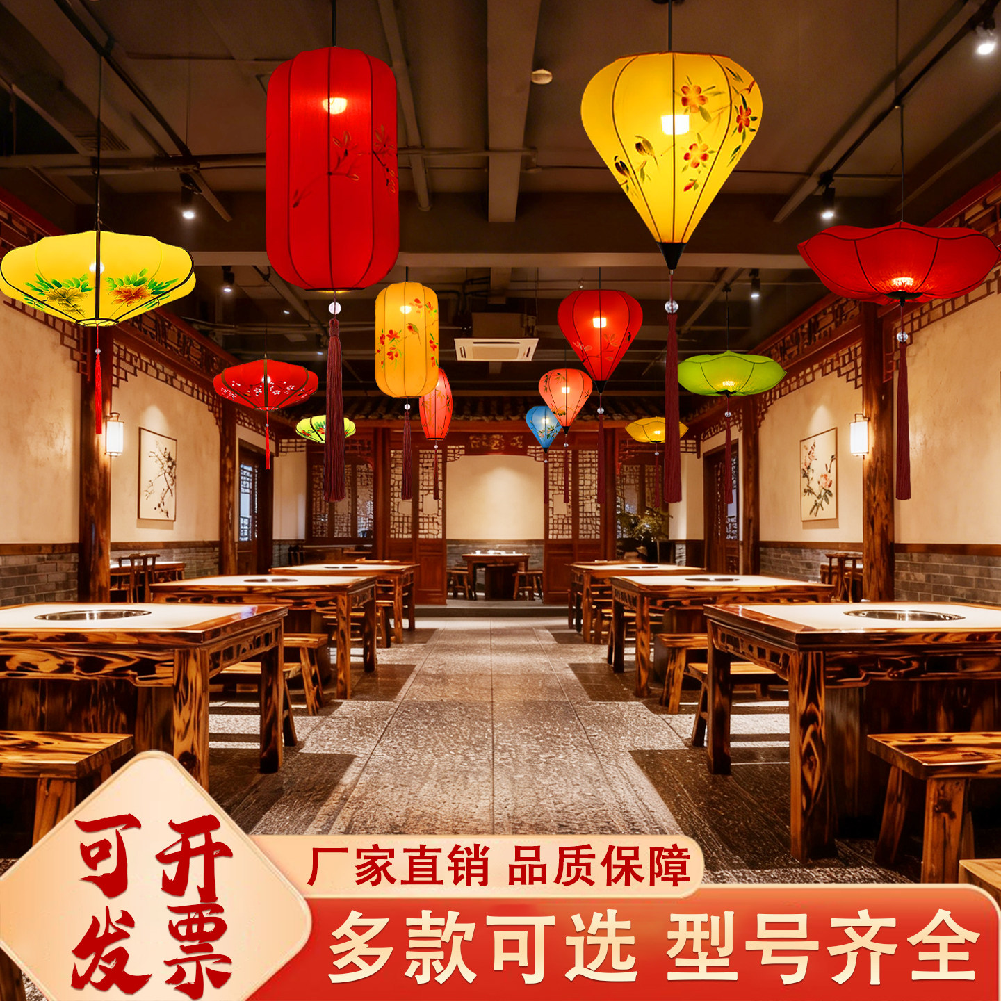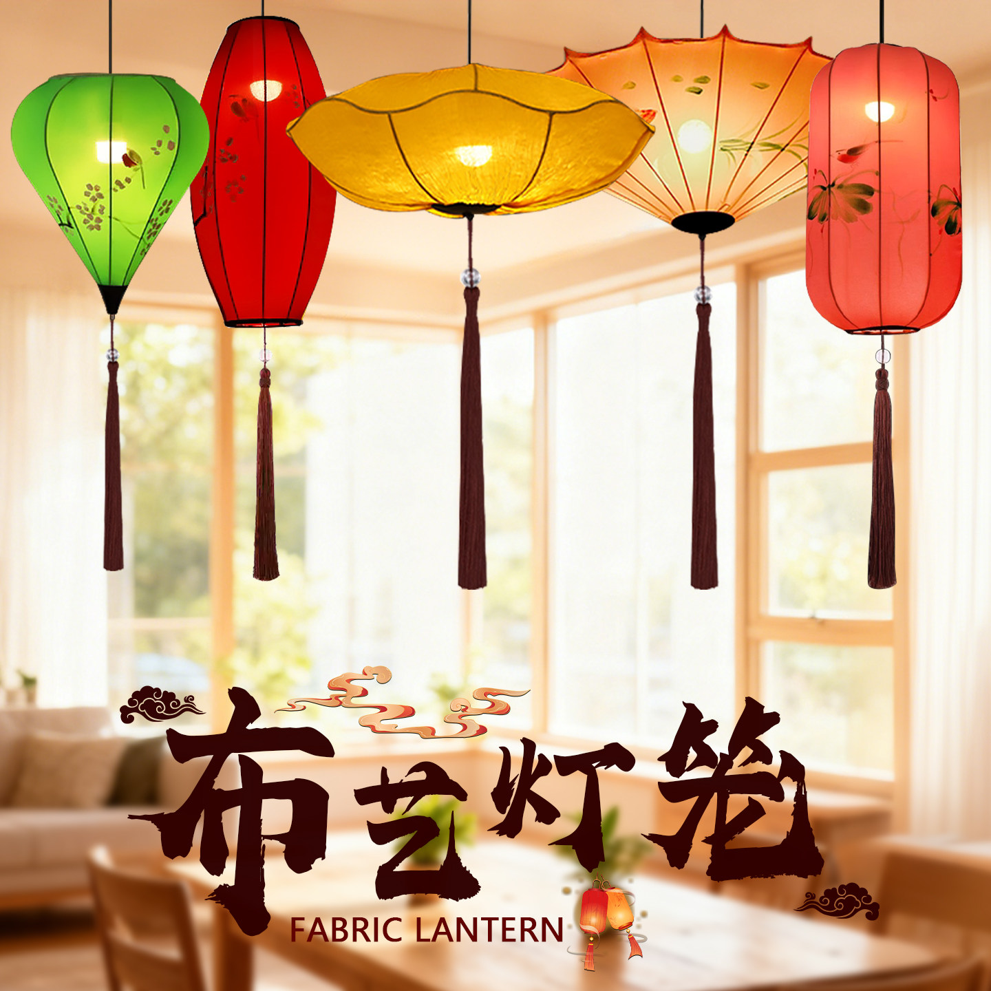 📚 新中式吊灯户外茶室中国风布艺灯笼火锅店走廊过道阳台酒楼饭店