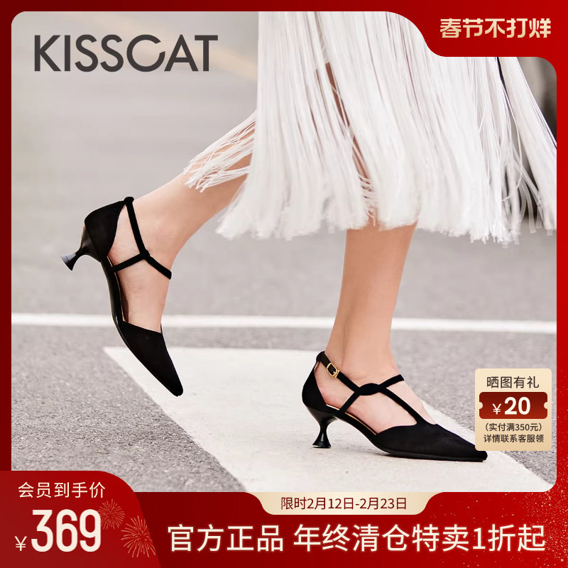 📚 KISSCAT接吻猫[华尔兹]高跟鞋秋季新款赫本风优雅凉鞋T字带单鞋女