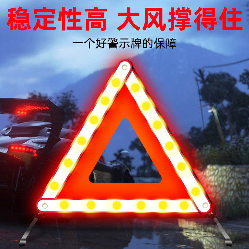 📚 汽车三角架警示牌可折叠LED反光安全标志牌年检验车通过国标认证