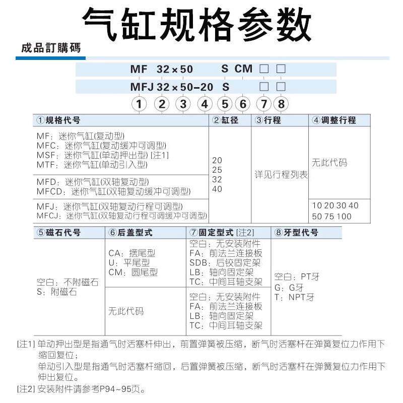 📚 迷你气缸MFC16/20/25/32-25X50X75X100X125X150SCA/SU/CM