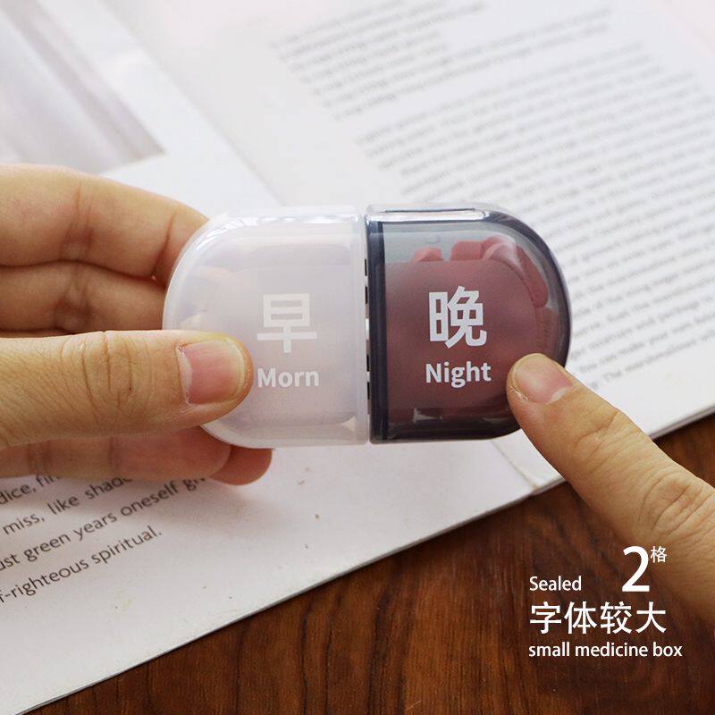 📚 放药的小盒子食品级药盒迷你随身带小药盒早晚二餐可拆卸分药盒药
