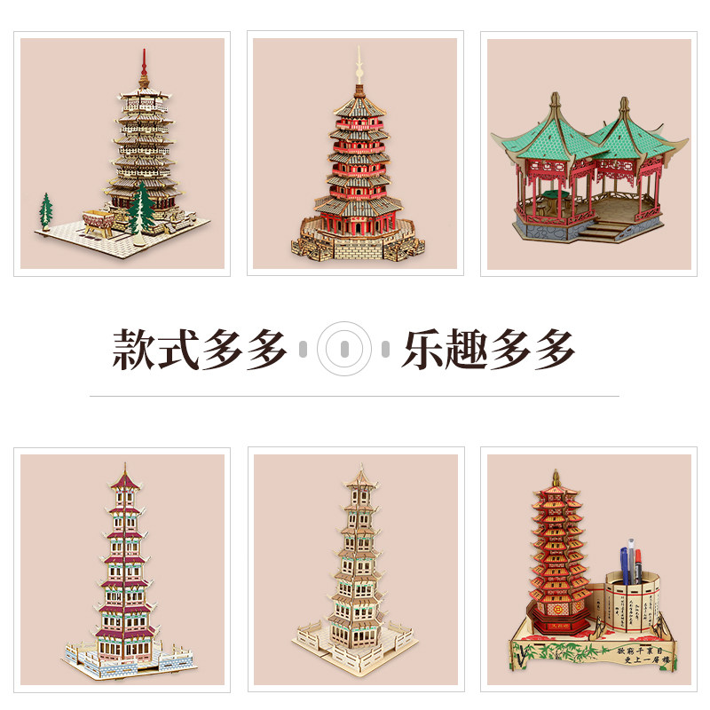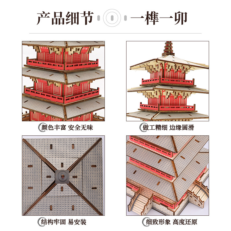 📚 寒山寺古风建筑3D拼装模型 木质立体拼图成人榫卯结构diy积木玩具