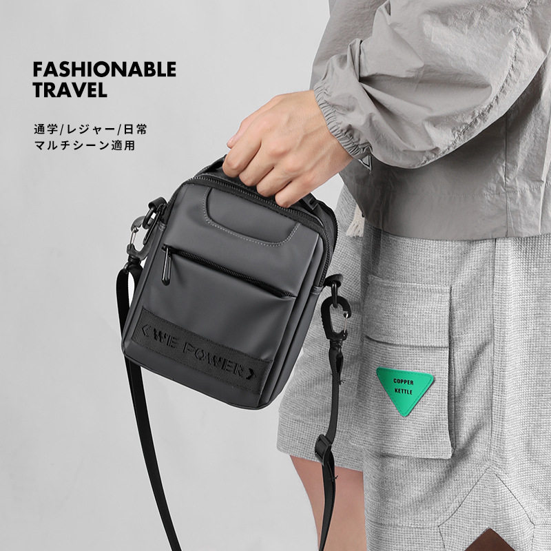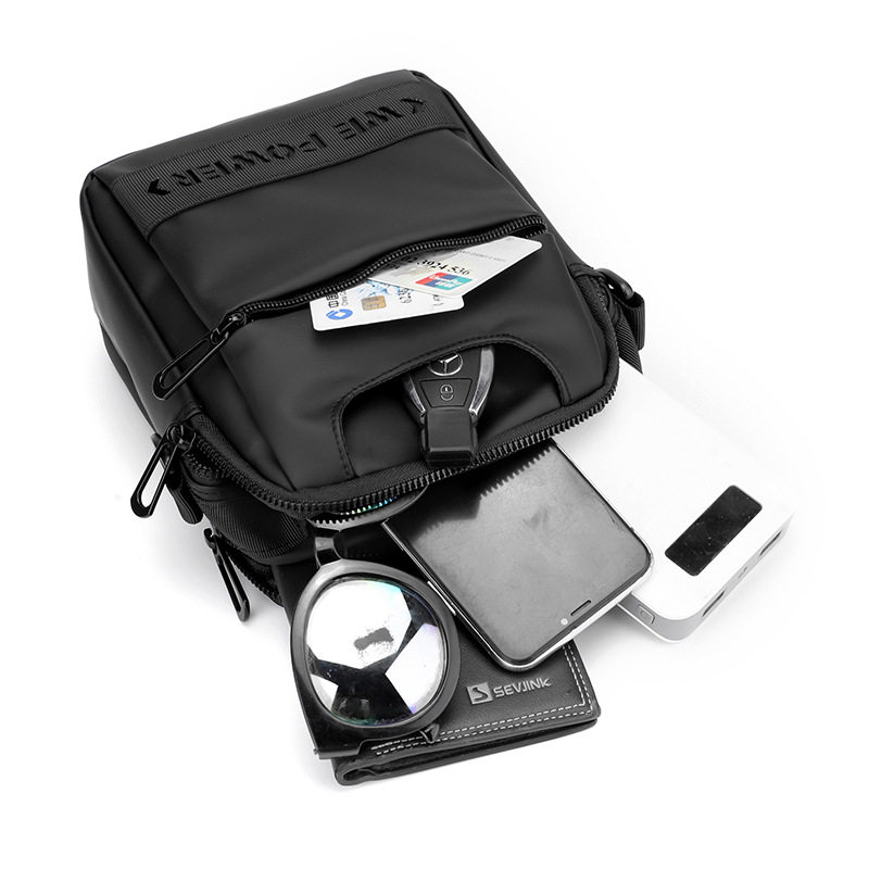 📚 防水耐磨单肩斜挎包男放7寸手机充电宝手提拉链小挎包穿皮带腰包