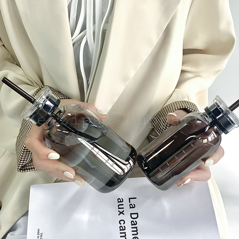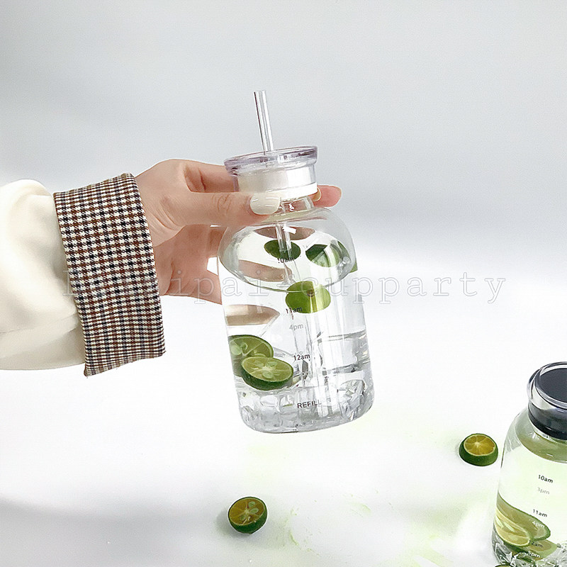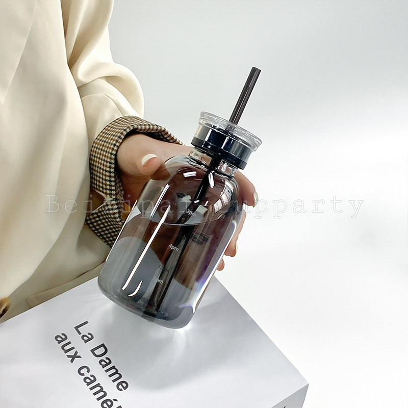 📚 高颜值吸管刻度水杯子高硼硅玻璃杯女生大容量果汁杯办公室咖啡杯