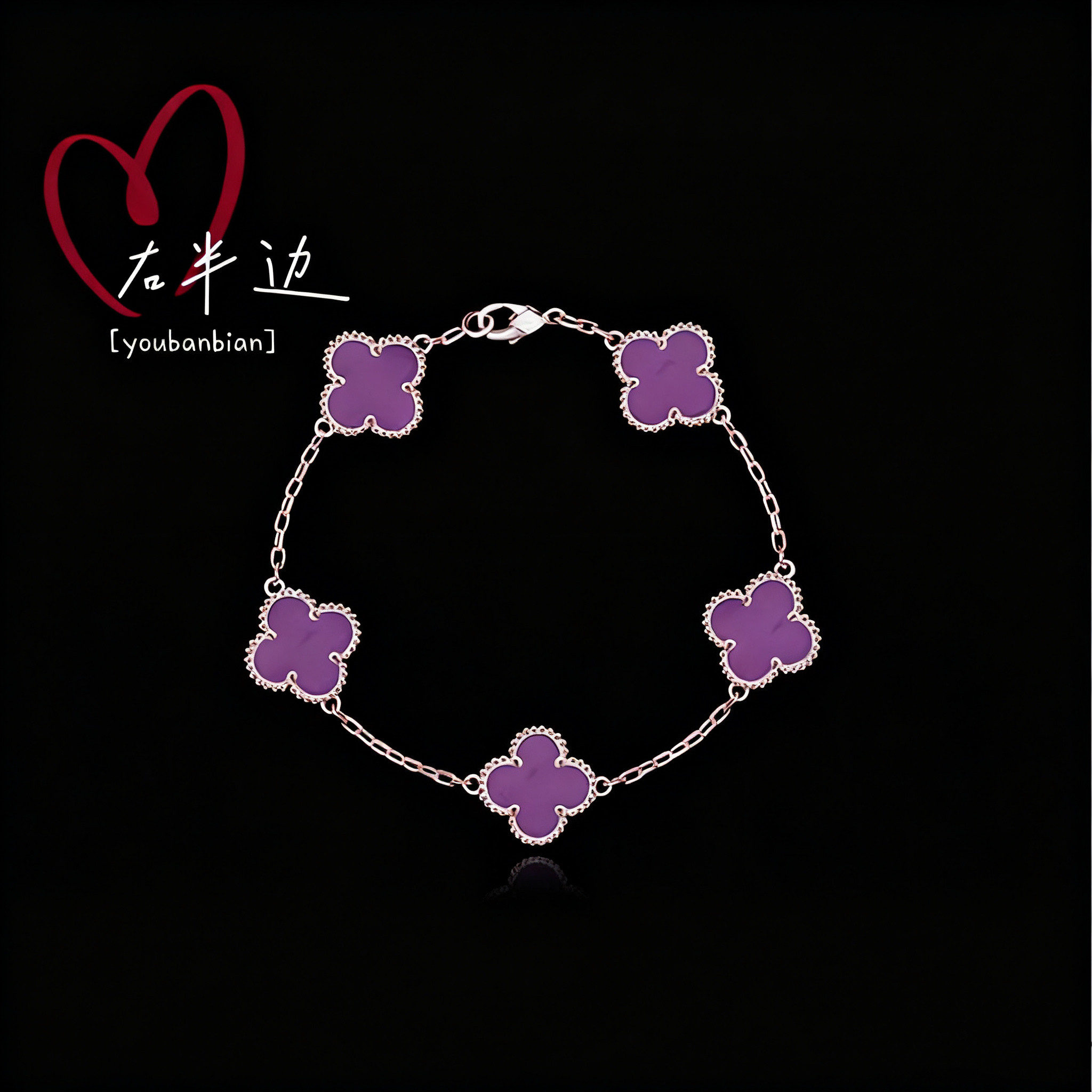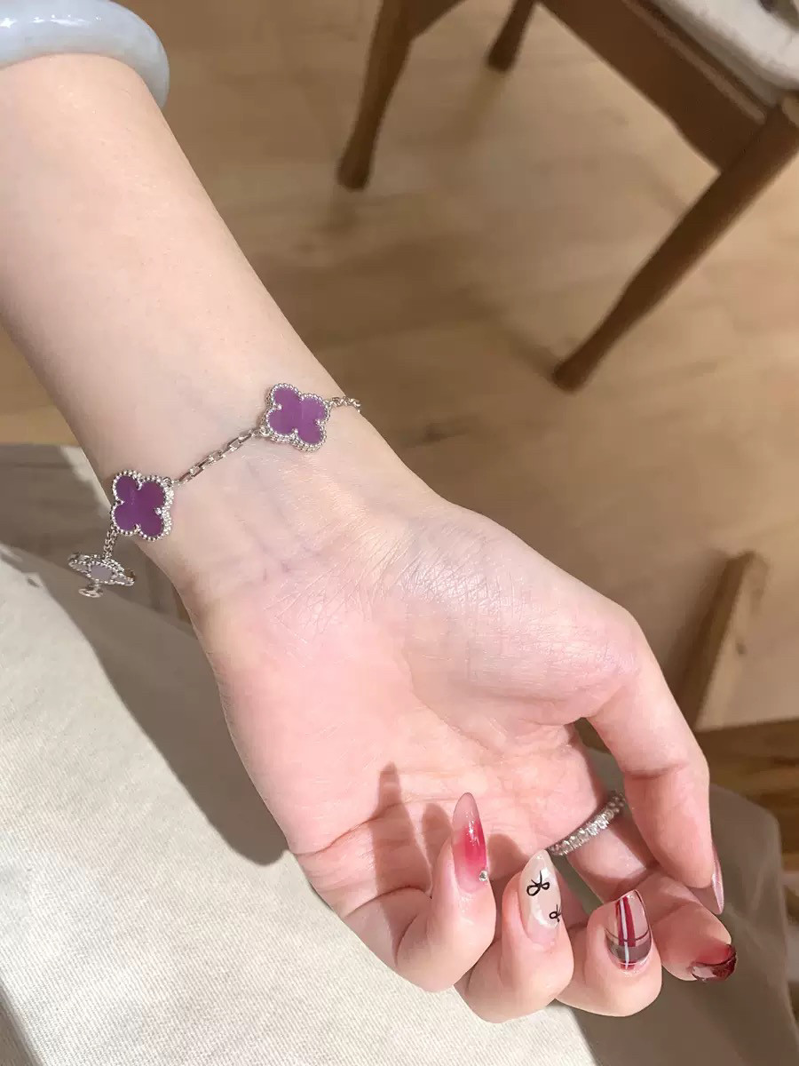 📚 右半边新款正品轻奢纯银紫罗兰四叶草五花手链女高级饰品轻奢礼物