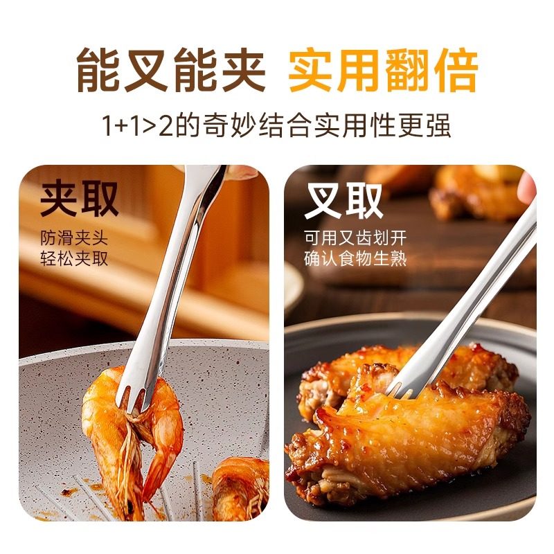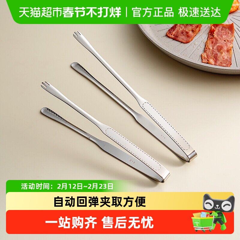 📚 onlycook 316不锈钢韩式烤肉夹子厨房加长煎牛排烧烤夹防滑防烫