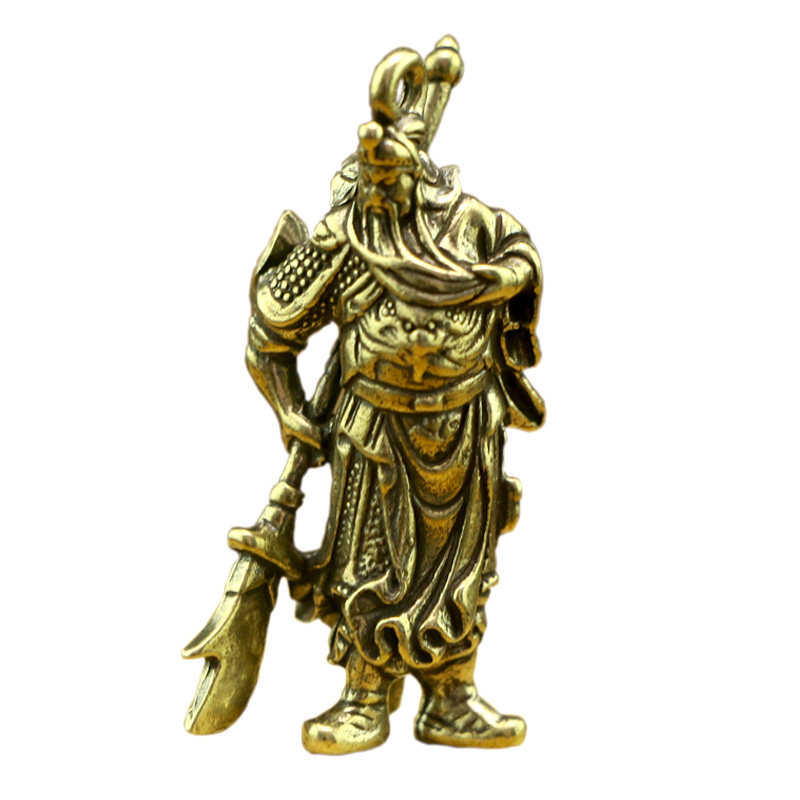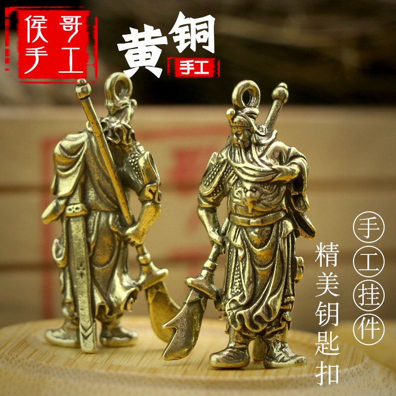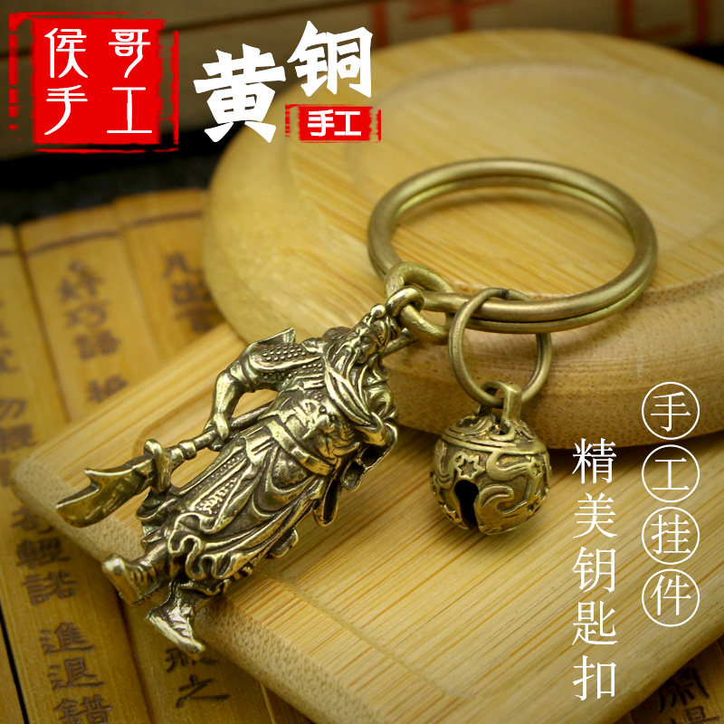 📚 复古纯黄铜带刀关公武财神钥匙扣小挂件吊坠男女汽车创意生日礼品