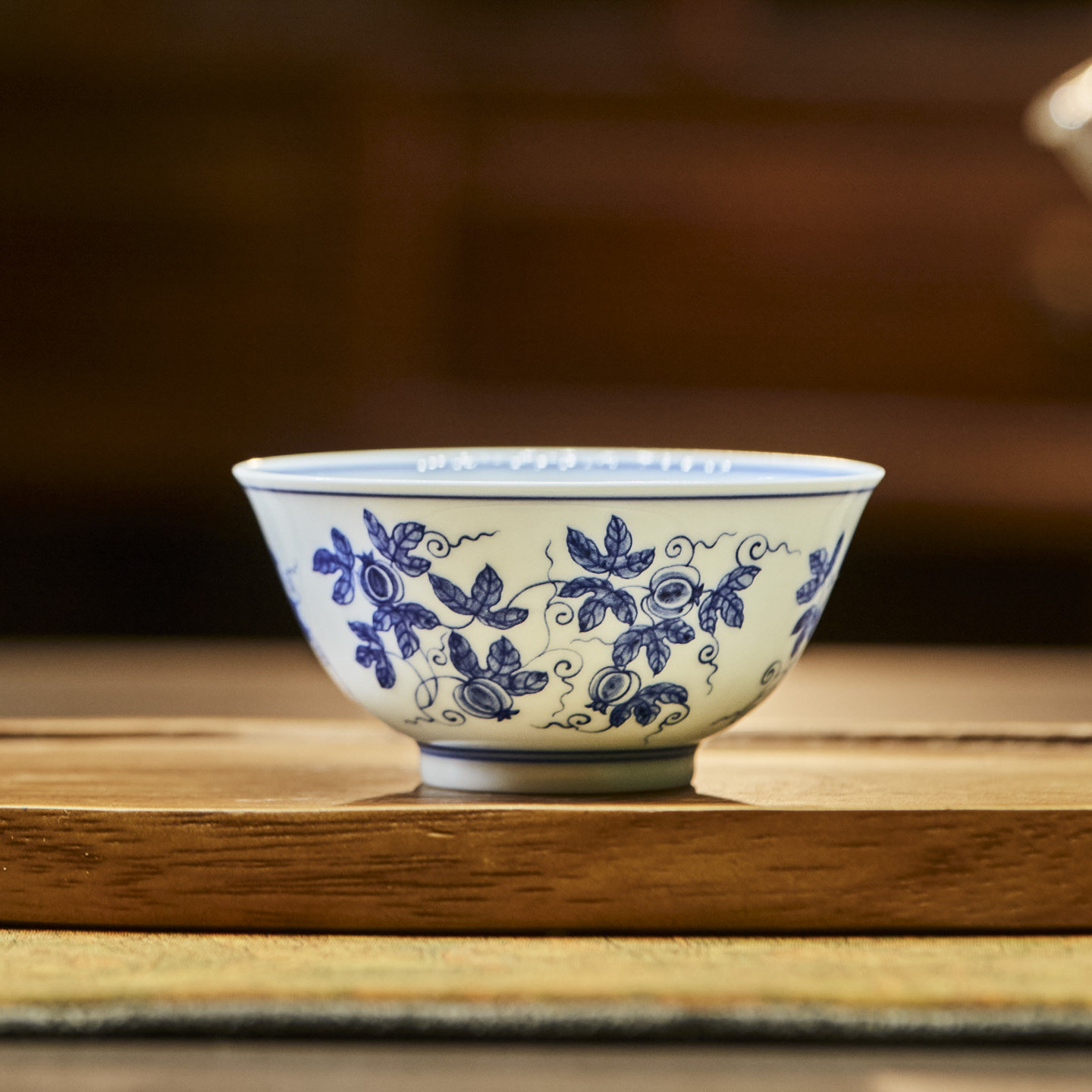 📚 主人杯茶杯功夫个人品茗杯景德镇青花瓷釉下彩薄胎瓜瓞绵绵宫碗杯