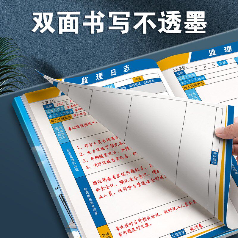 📚 监理日志双面a4加厚项目经理旁站进度记录本建筑工程工地装修登记