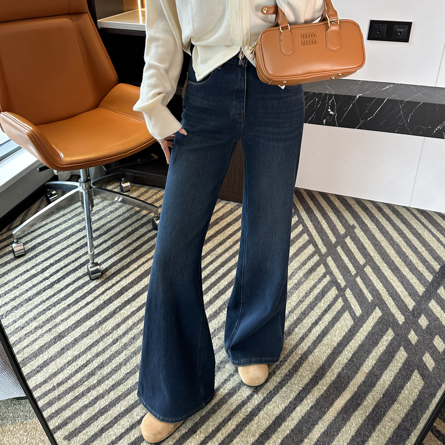 📚 版型超牛~!显瘦不臃肿加绒微喇叭牛仔裤女秋冬新款高腰弹力长裤