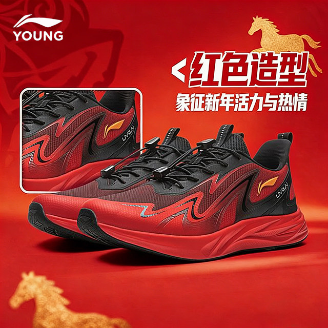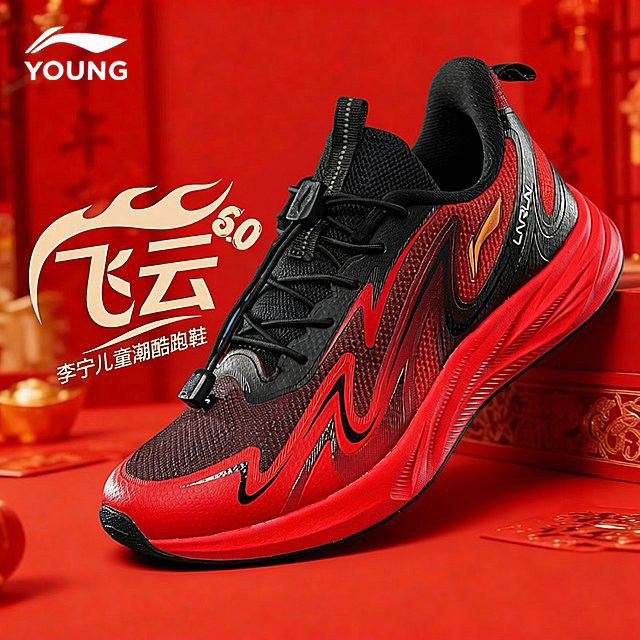 📚 李宁儿童专业跑步鞋飞云男童马年红色运动鞋2026新年款青少年跑鞋