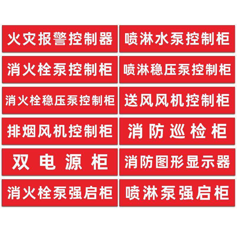 📚 消防喷淋水泵消火栓稳压泵控制柜标志牌消防模块箱排烟送风风机控制柜箱双电源巡检强启柜箱标识牌贴纸定制做