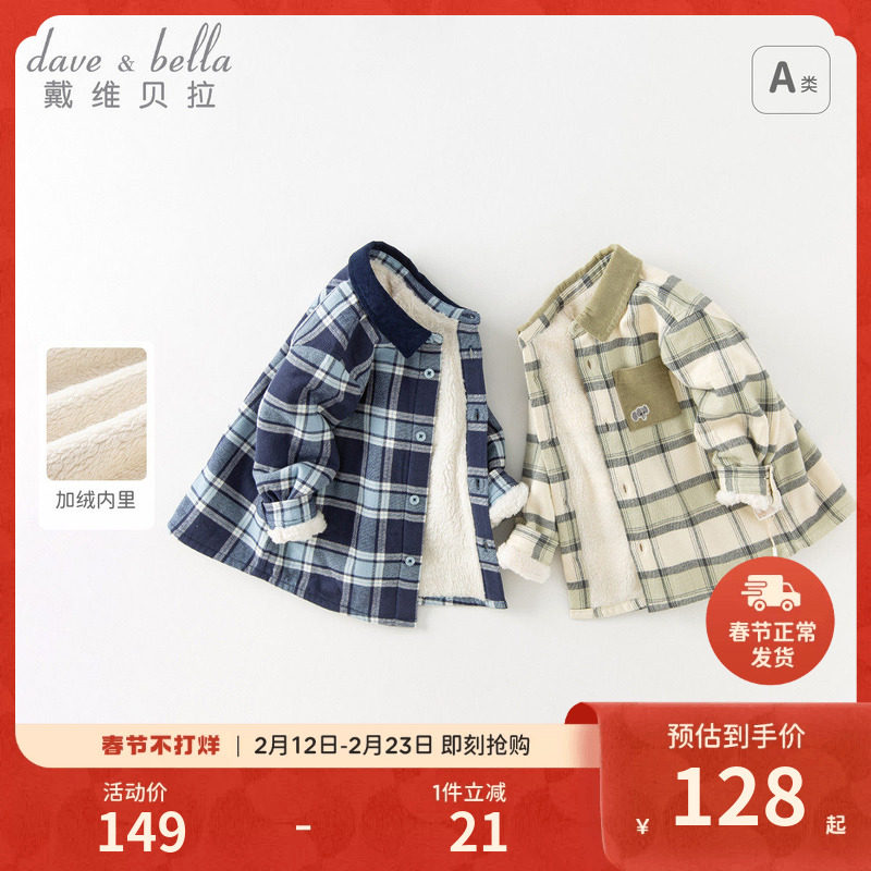 📚 【商场同款】戴维贝拉儿童衬衫保暖冬季新款男童加绒宝宝格子衬衣