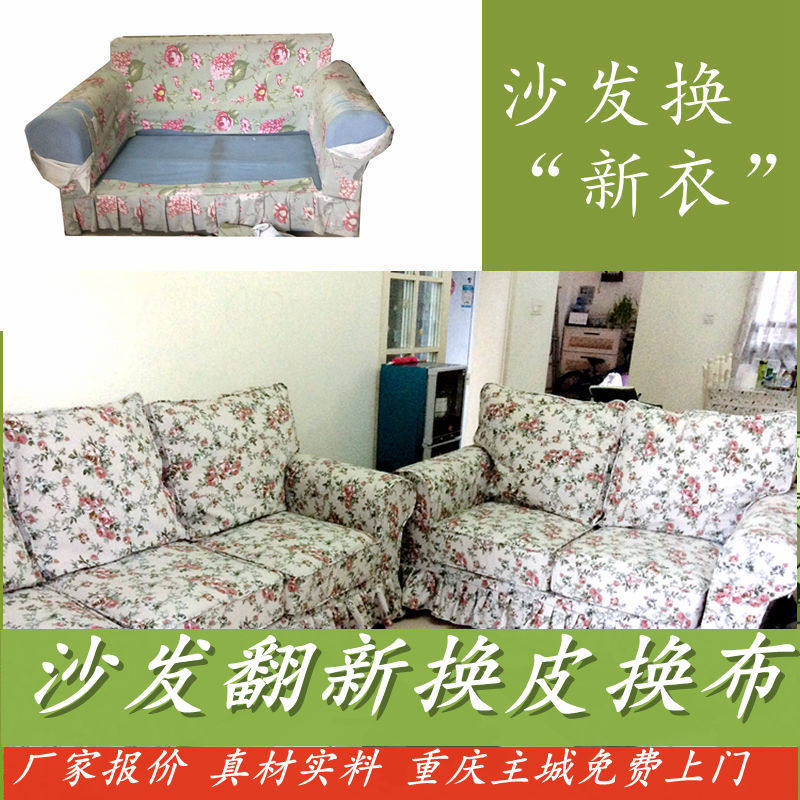 📚 重庆主城上门翻新定做全包换皮换面布简约纯色布真皮沙发套罩定制