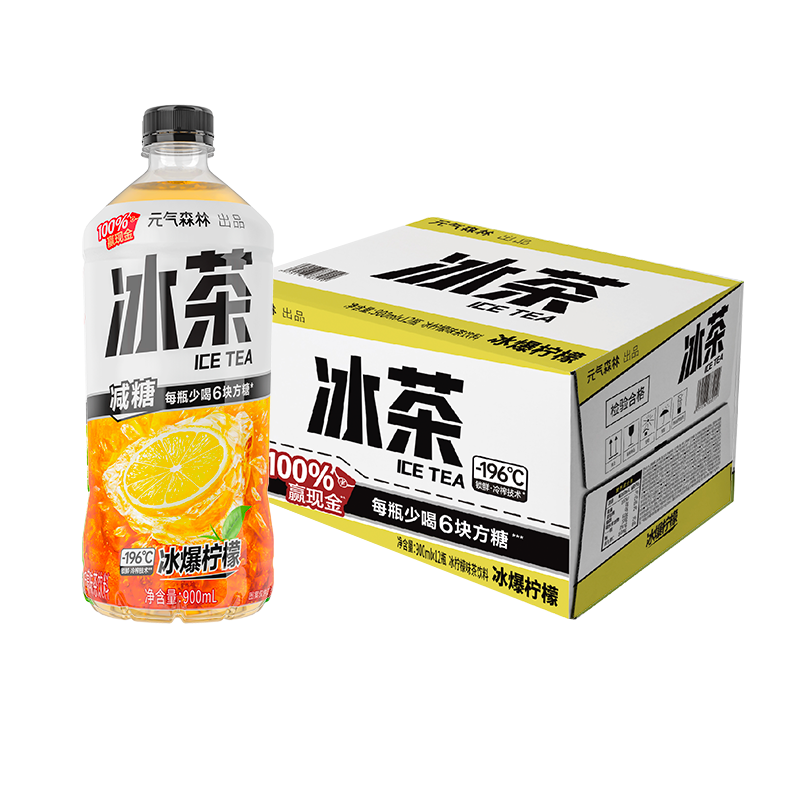 📚 元气森林冰茶900ml*12瓶整箱特价大瓶柠檬白桃茉莉葡萄柚绿茶饮料