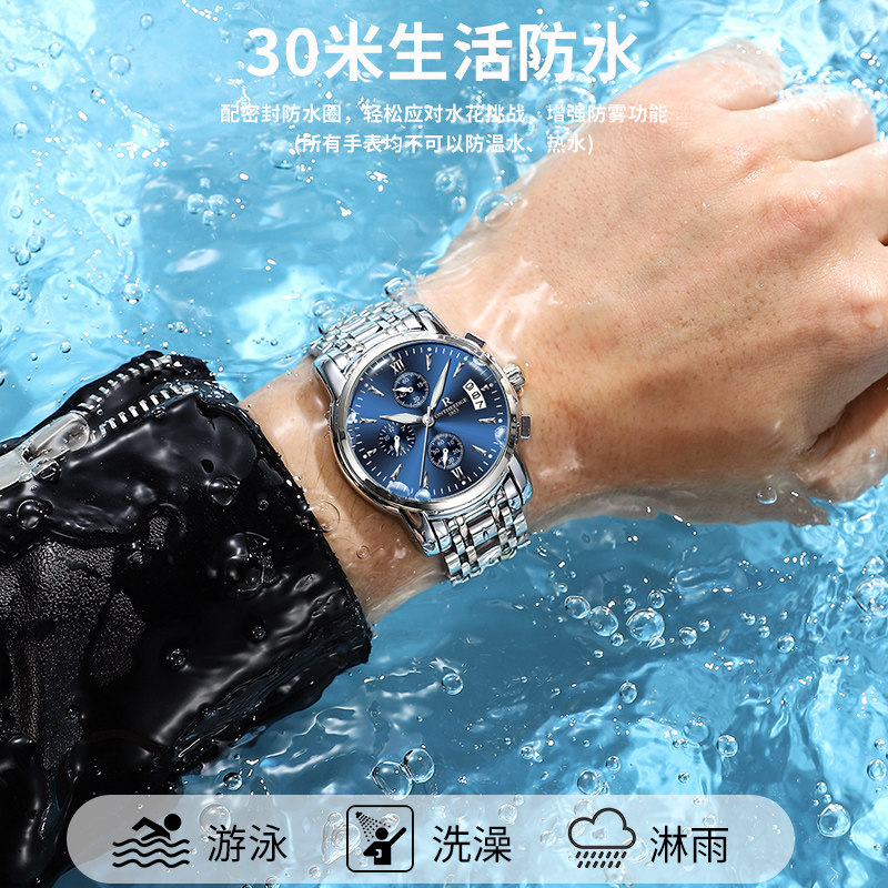 📚 瑞士认证男士手表男款多功能机械表夜光防水商务简约石英表男腕表